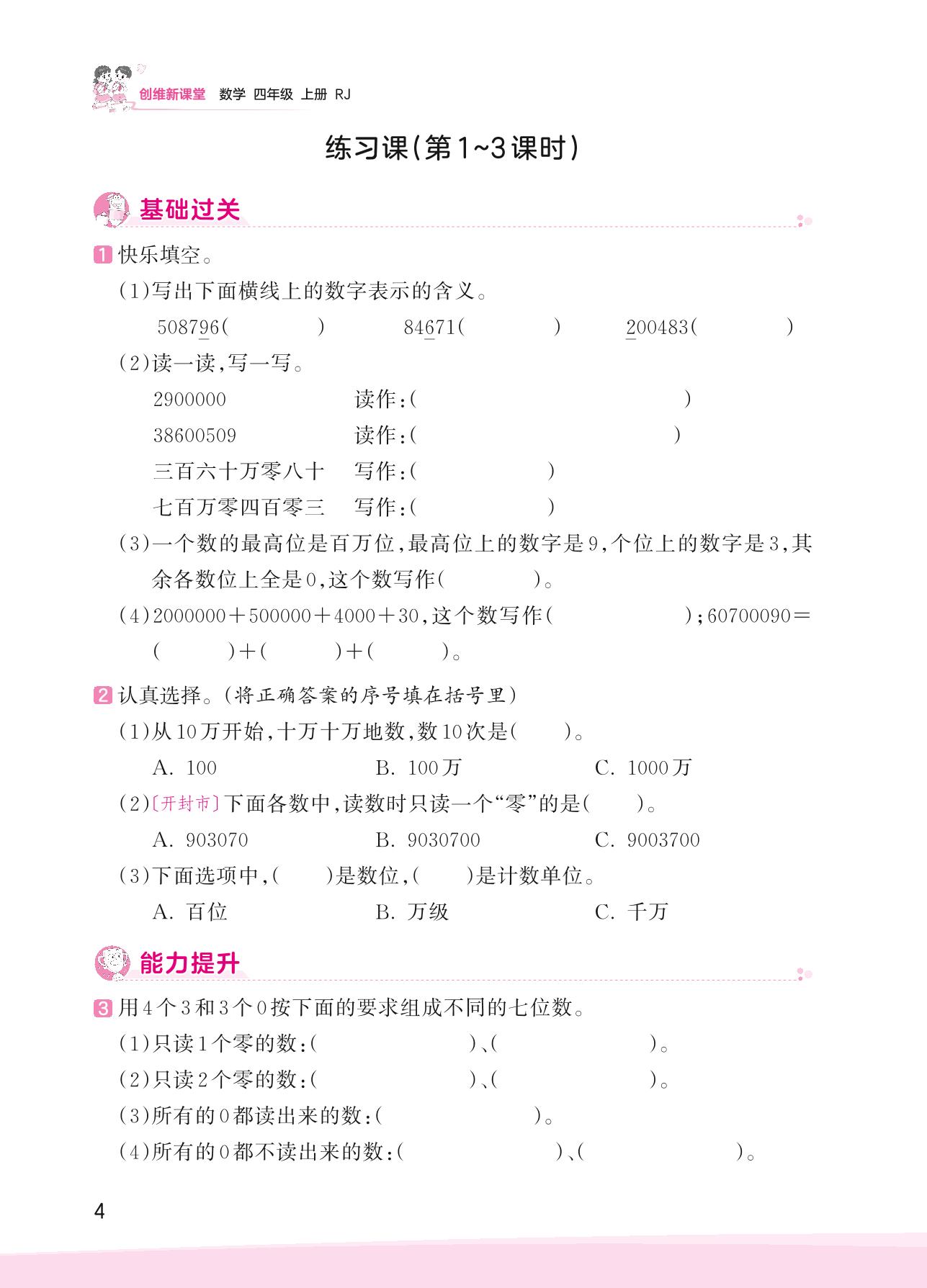 2023上册四年级数学人教版 一 大数的认识 ——练习课(第1~3课时)