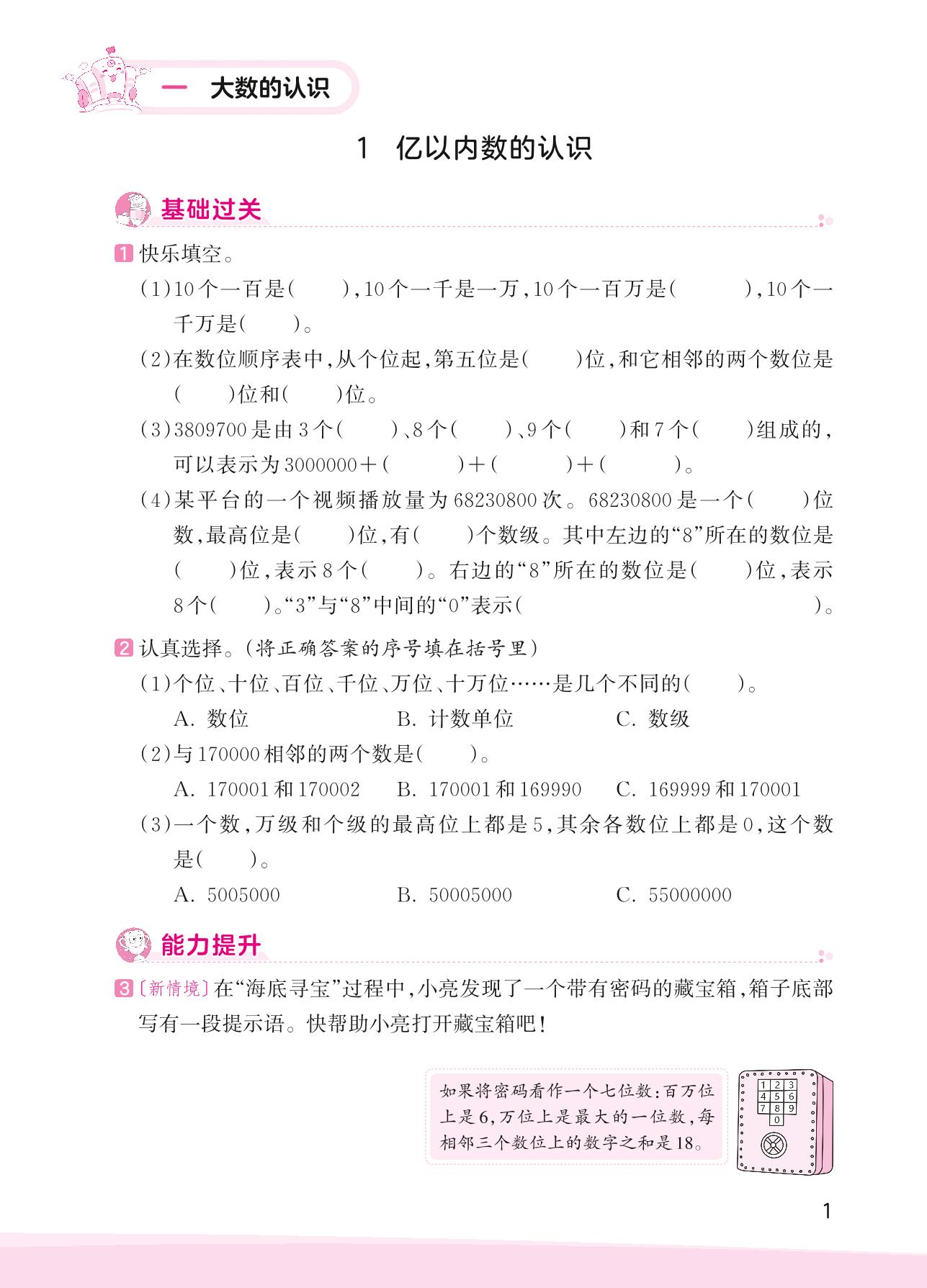 2023上册四年级数学人教版 一 大数的认识 ——1 亿以内数的认识
