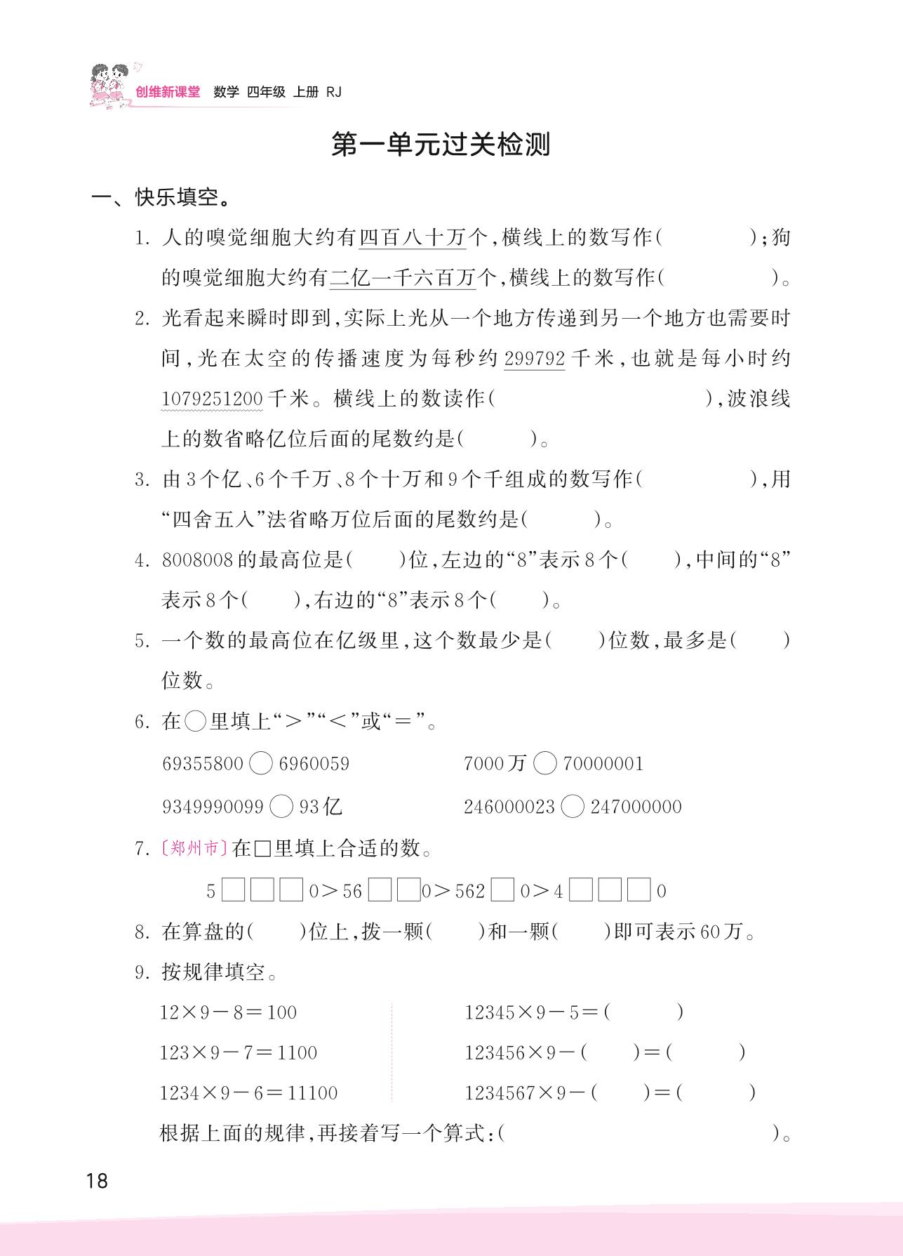 四年级数学人教版上册单元卷