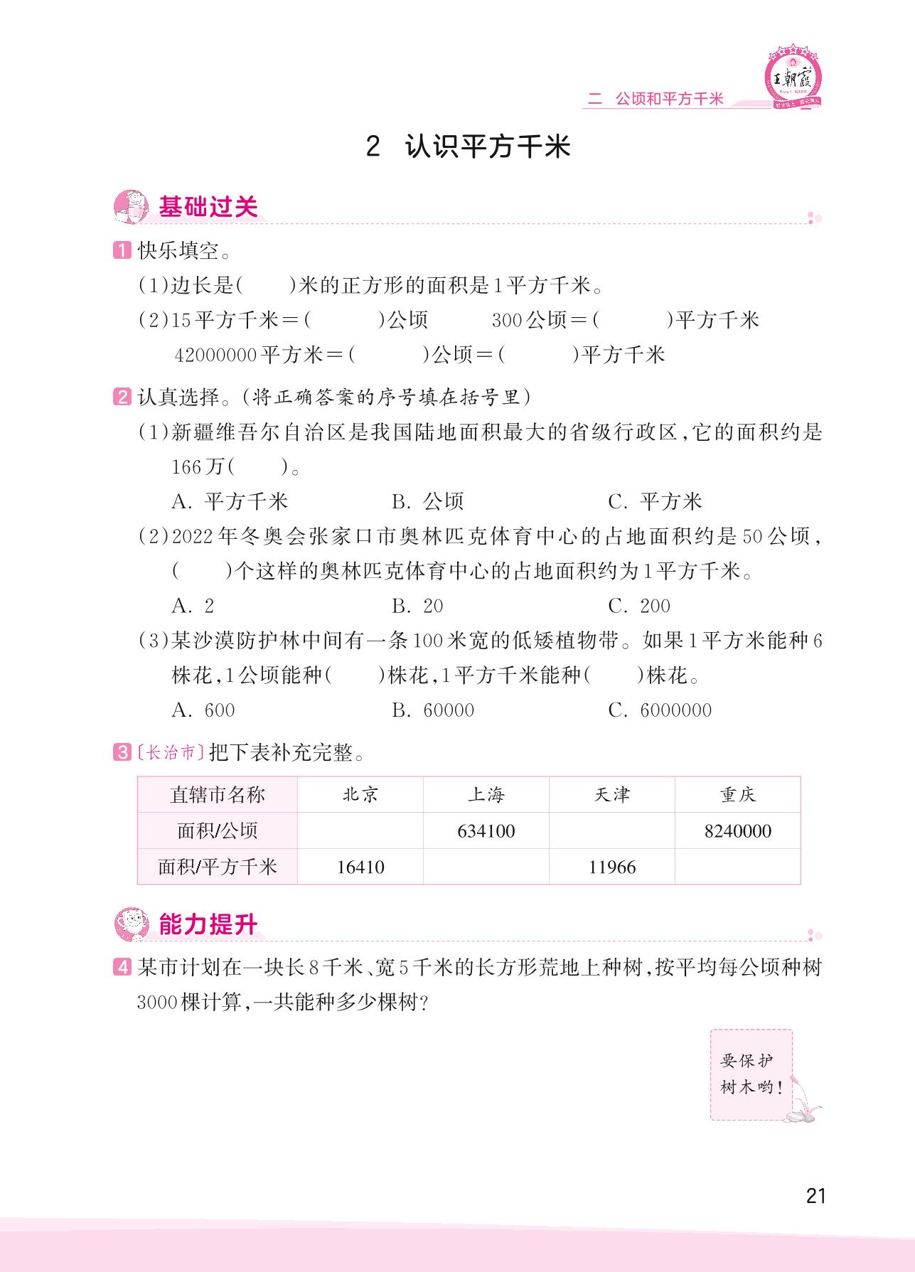 2023上册四年级数学人教版 二 公顷和平方千米——2 认识平方千米
