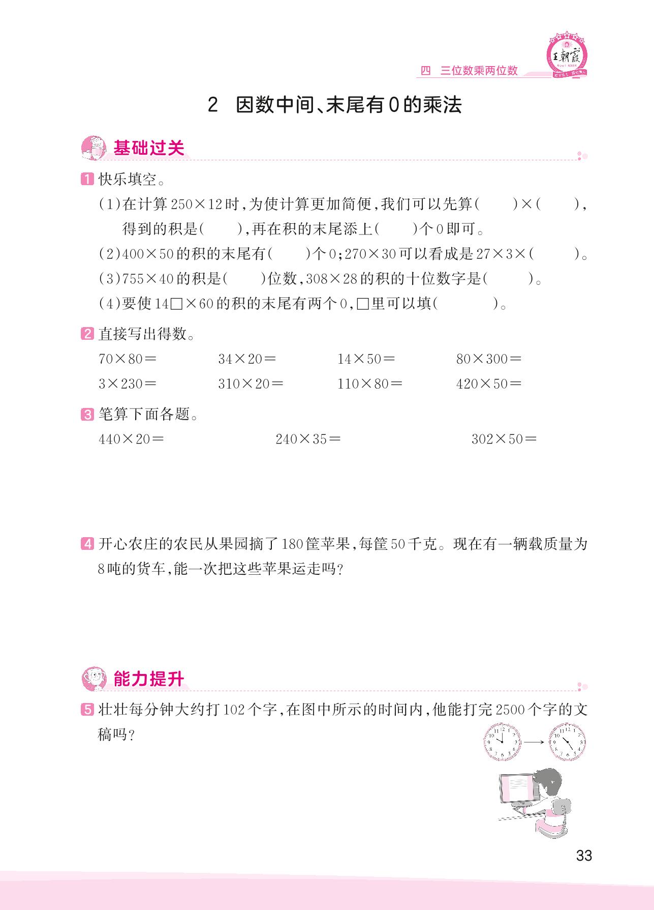 2023上册四年级数学人教版 四 三位数乘两位数——2 因数中间、末尾有0的乘法