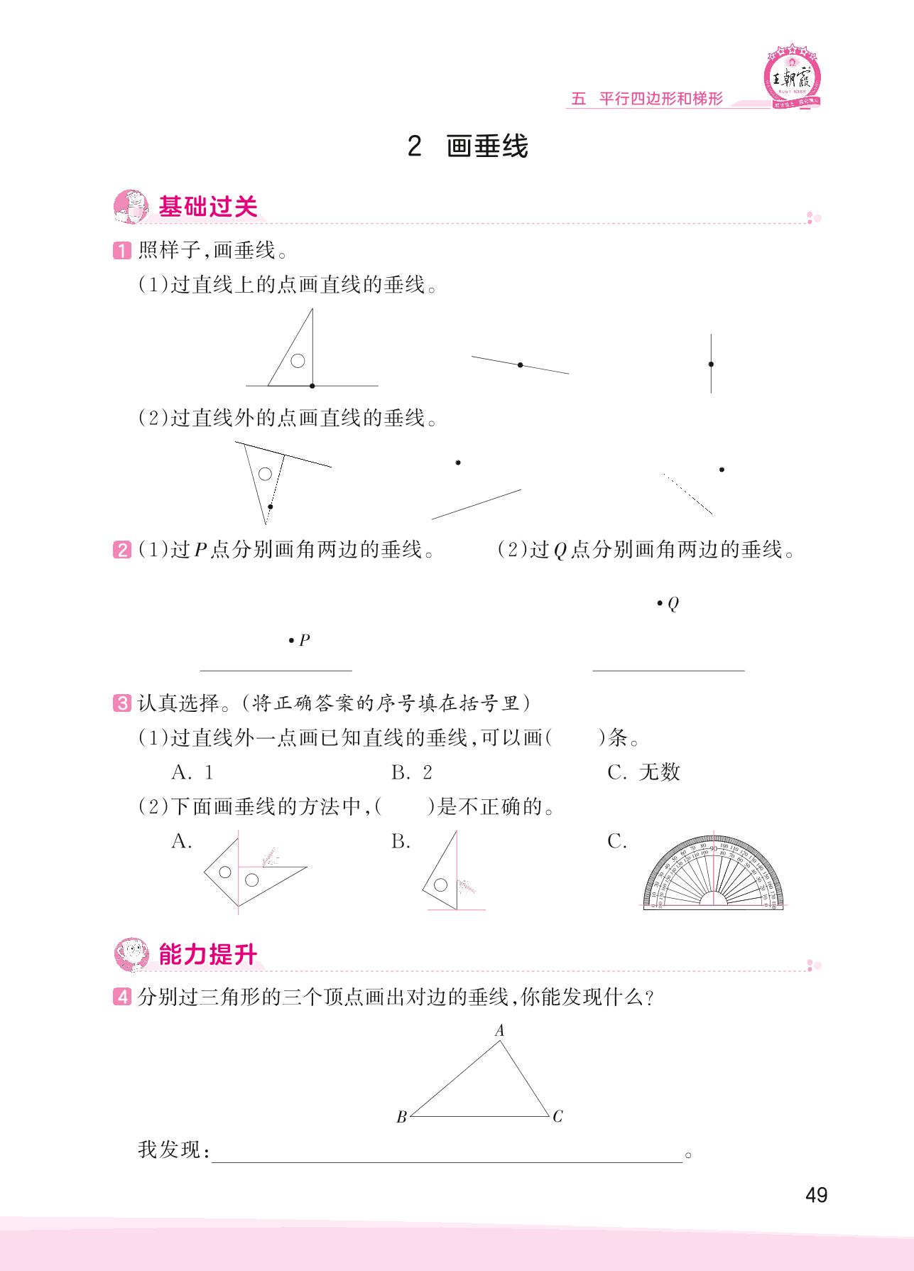 2023上册四年级数学人教版 五 平行四边形和梯形——2 画垂线