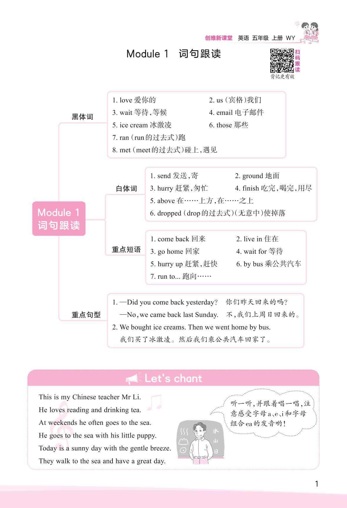 2023上册五年级英语外研版 Module 1 词句跟读