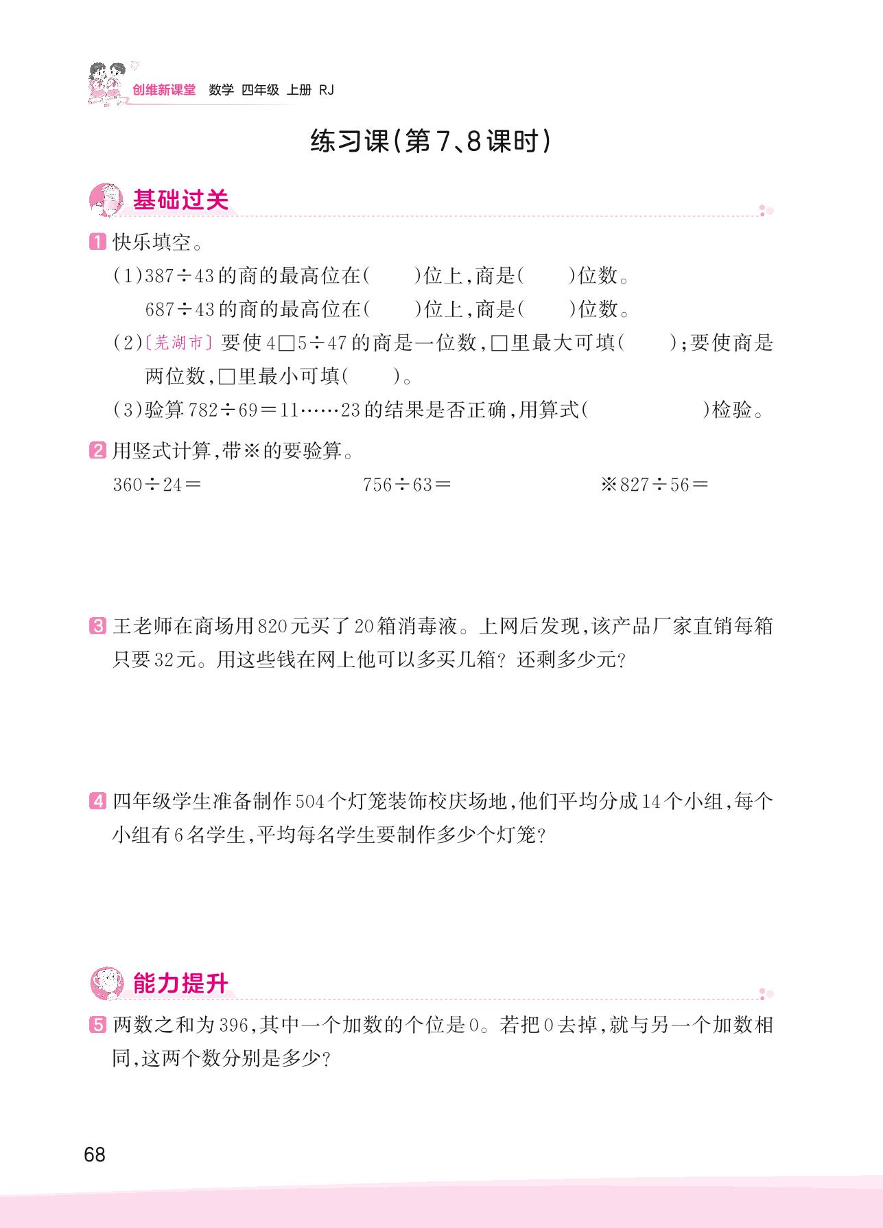 2023上册四年级数学人教版 六 除数是两位数的除法——练习课(第7、8课时)