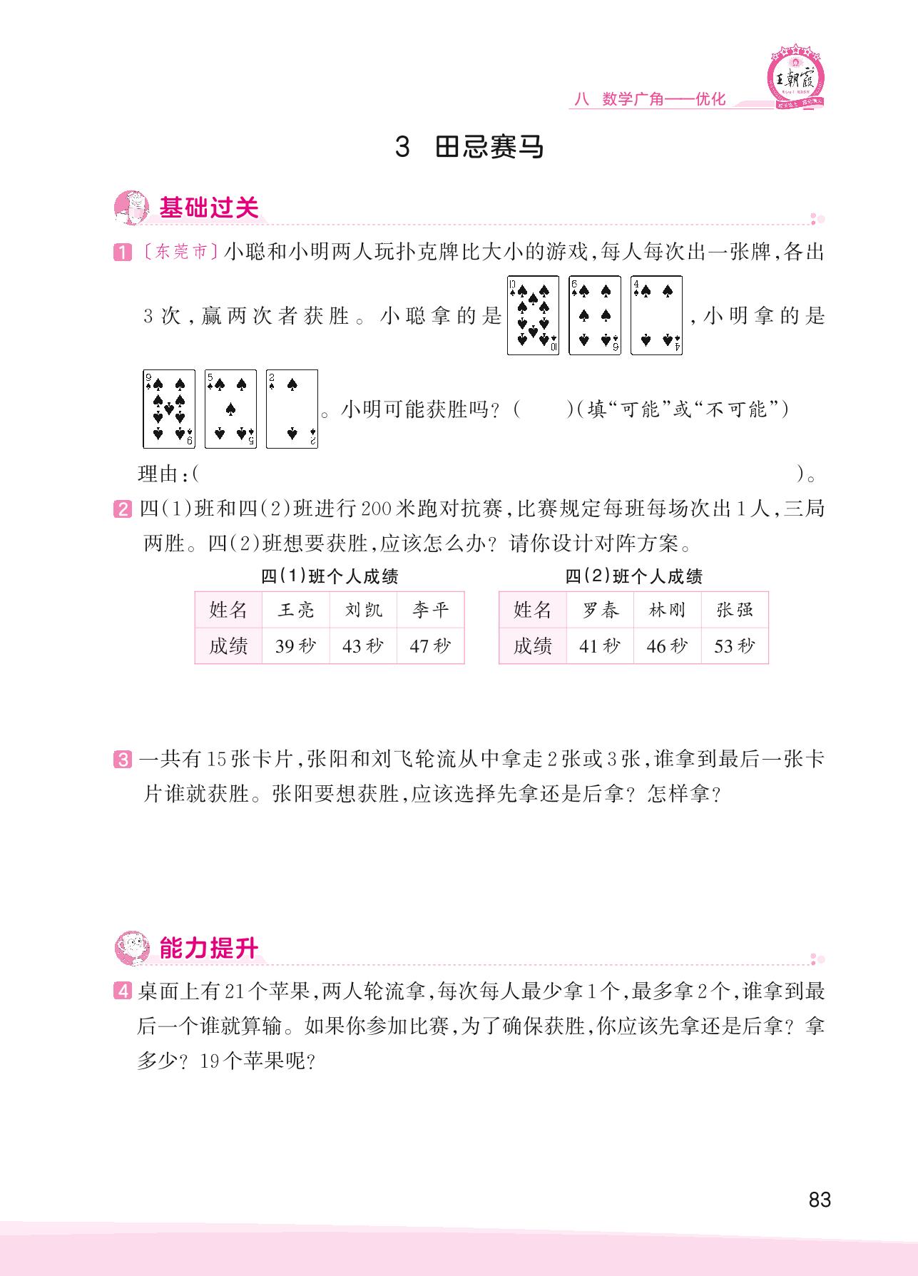 2023上册四年级数学人教版 八 数学广角 优化——3 田忌赛马