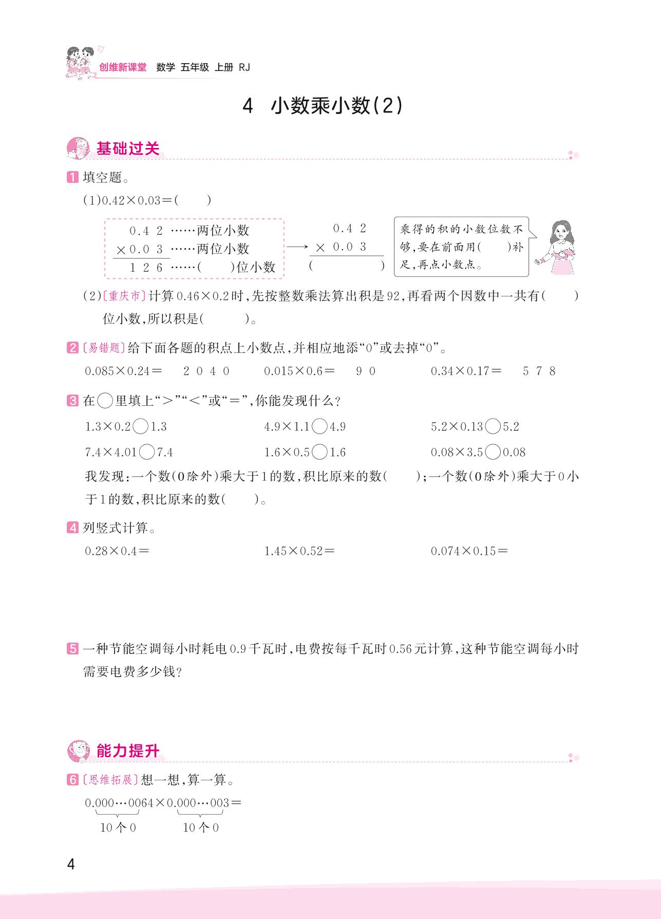 2023上册五年级数学人教版 一 小数乘法——4 小数乘小数(2)