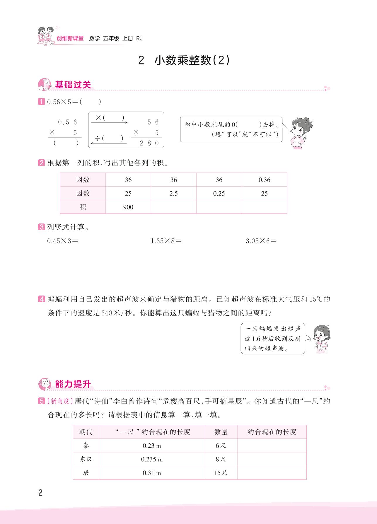 2023上册五年级数学人教版 一 小数乘法——2 小数乘整数(2)