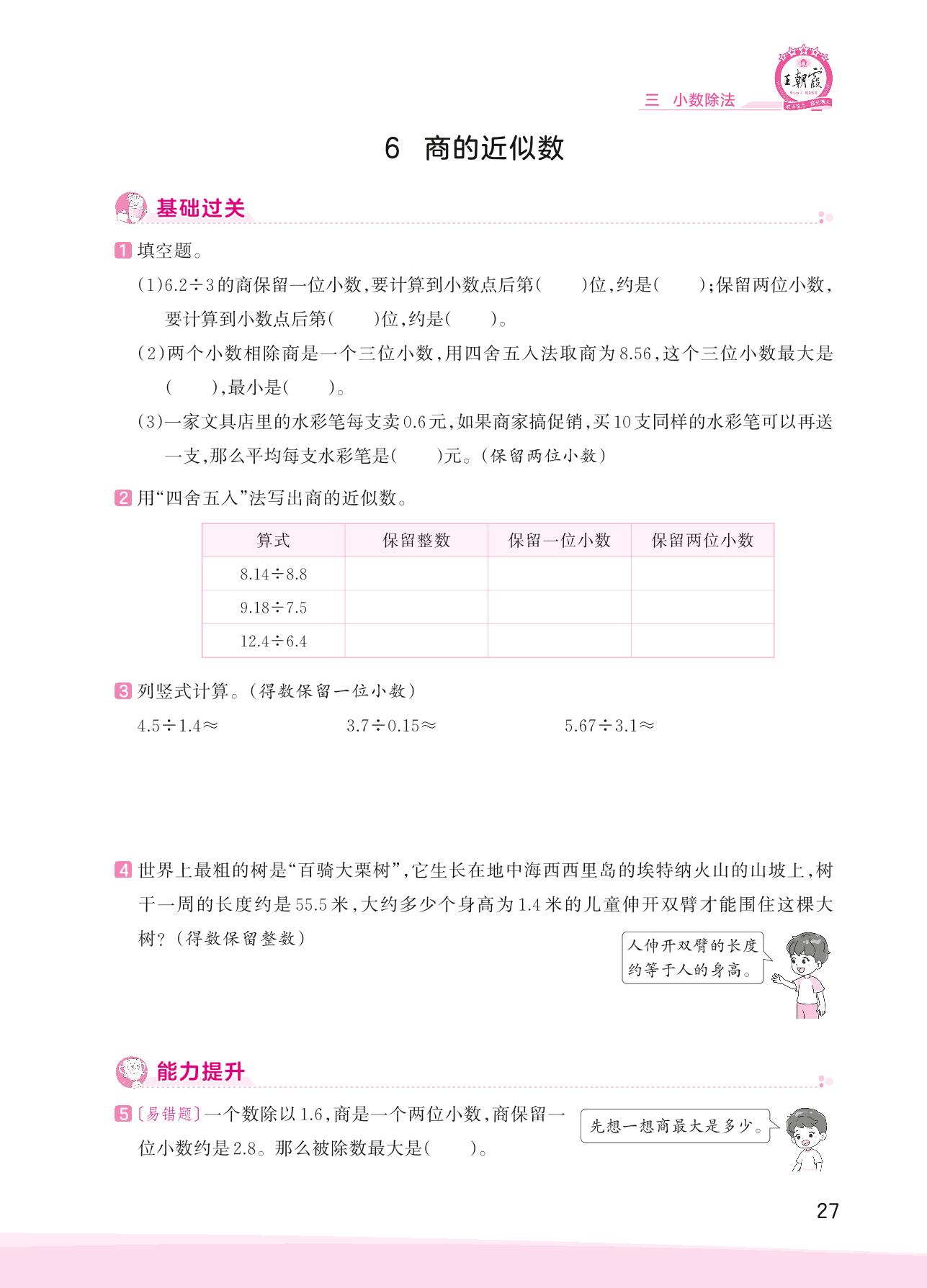 2023上册五年级数学人教版 三 小数除法——6 商的近似数