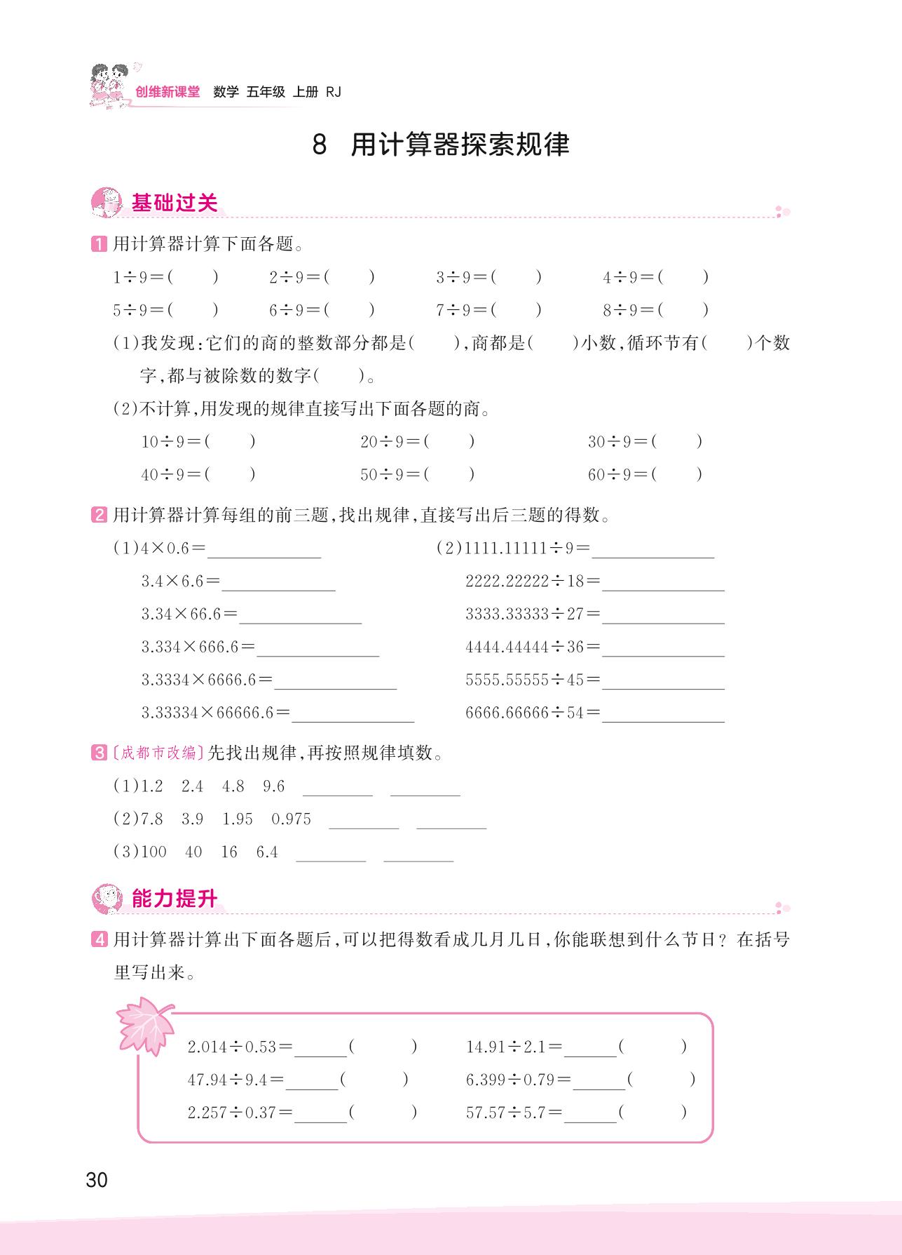 2023上册五年级数学人教版 三 小数除法——8 用计算器探索规律