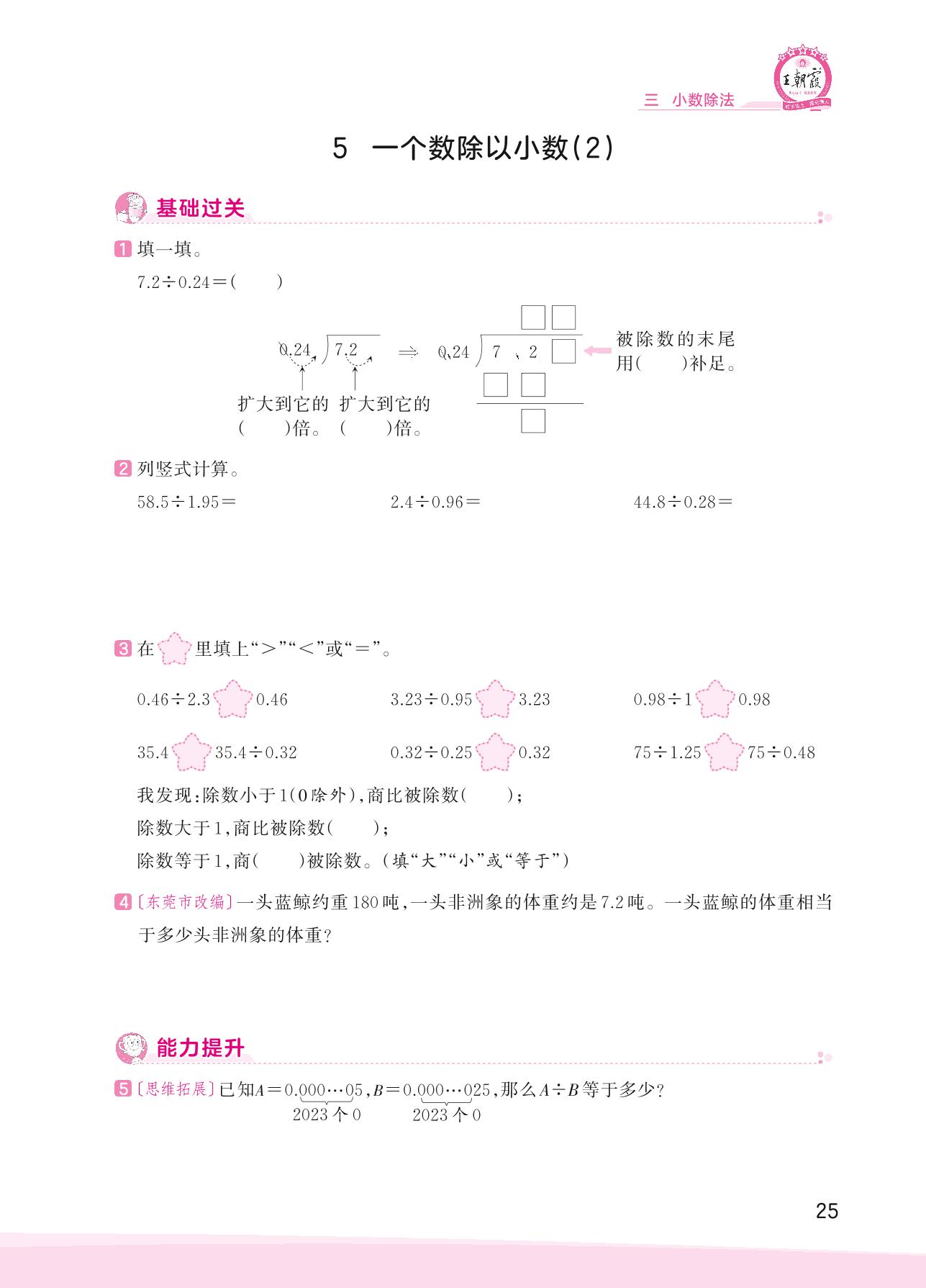 2023上册五年级数学人教版 三 小数除法——5 一个数除以小数(2)