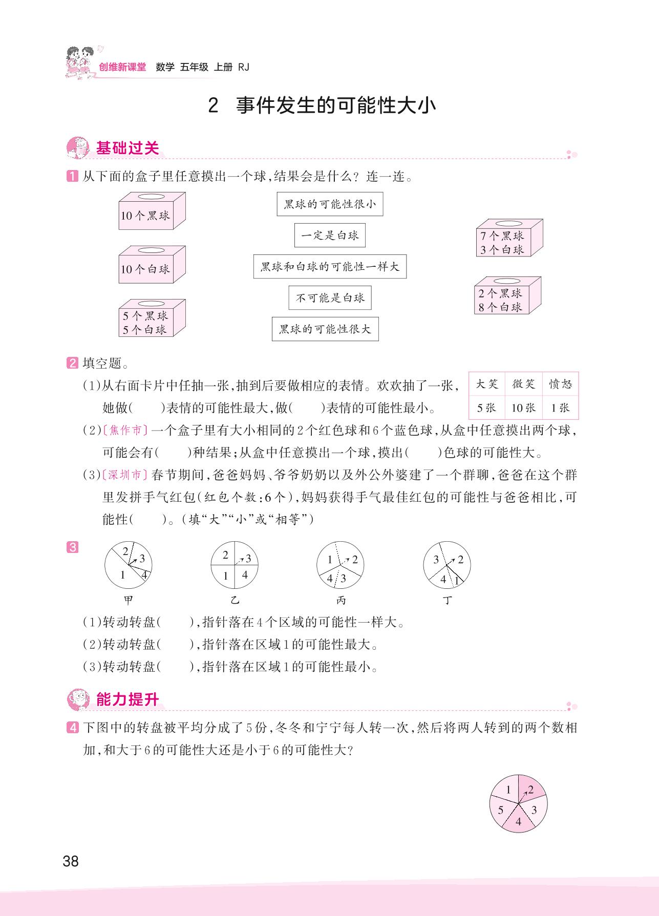 2023上册五年级数学人教版 四 可能性——2 事件发生的可能性大小