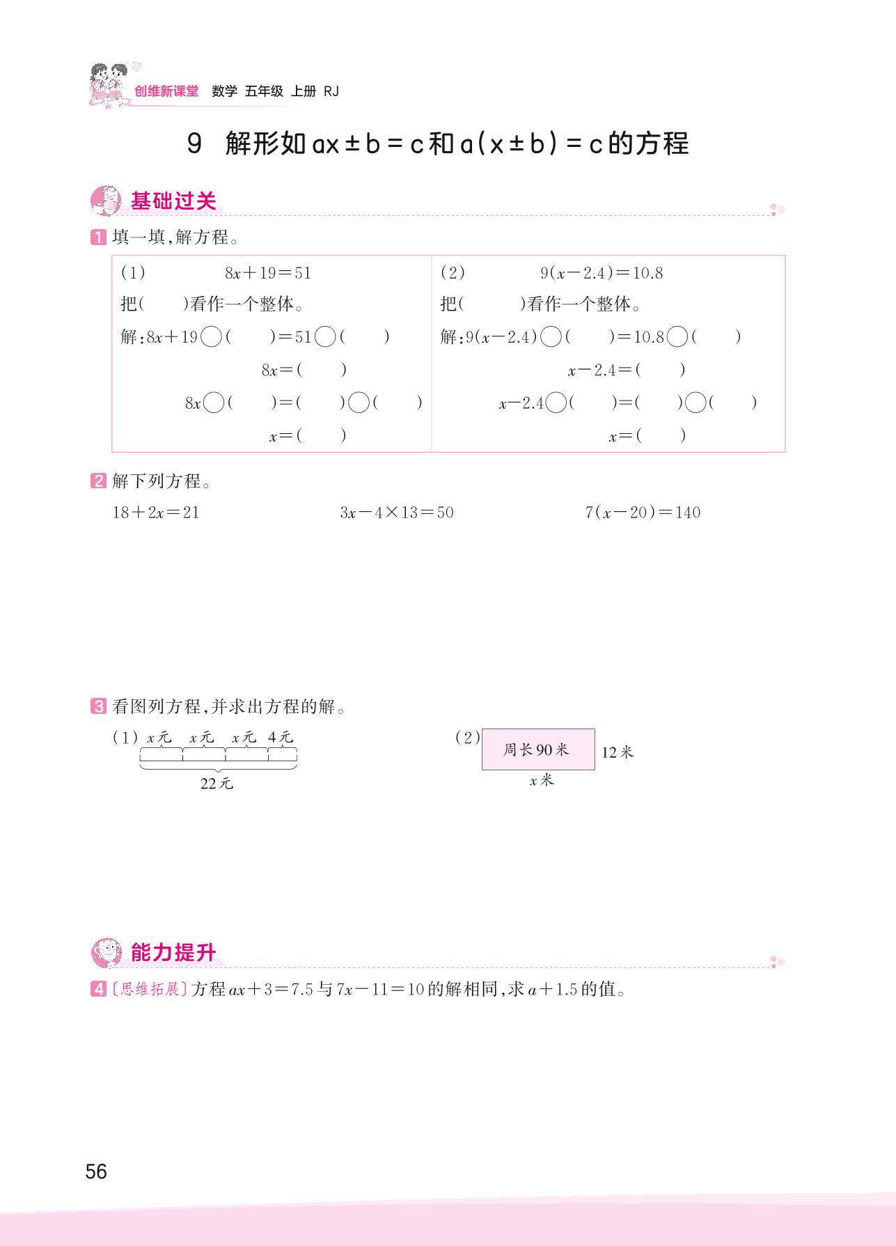 2023上册五年级数学人教版 五 简易方程——9 解形如ax±b=c和a(x±b)=c的方程
