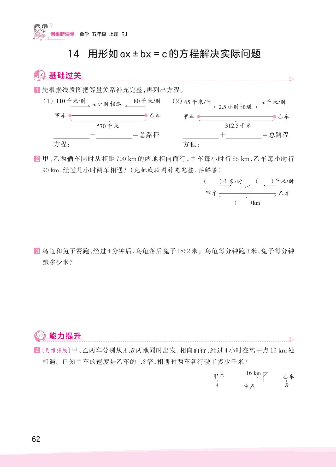 2023上册五年级数学人教版 五 简易方程——14 用形如ax±bx=c的方程解决实际问题