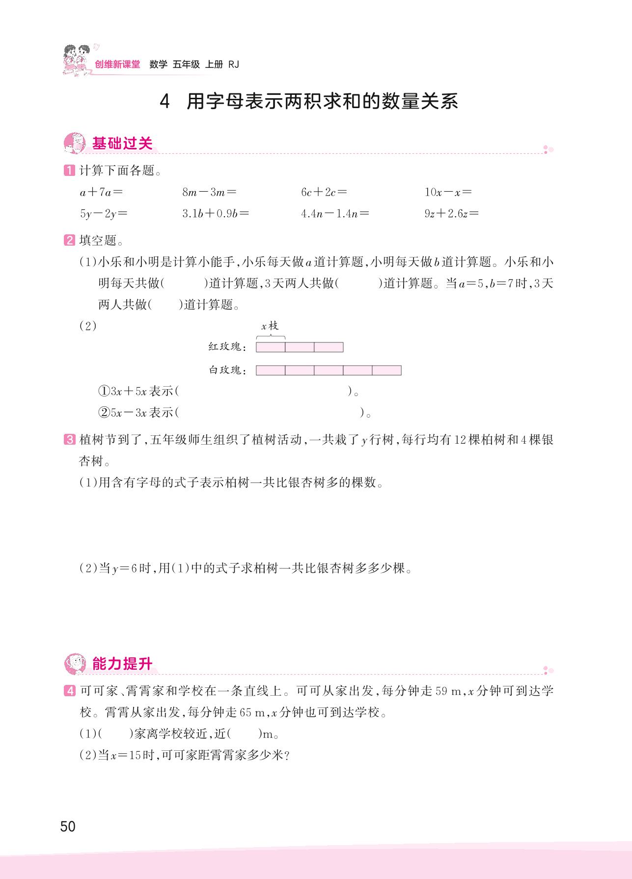 2023上册五年级数学人教版 五 简易方程——4 用字母表示两积求和的数量关系