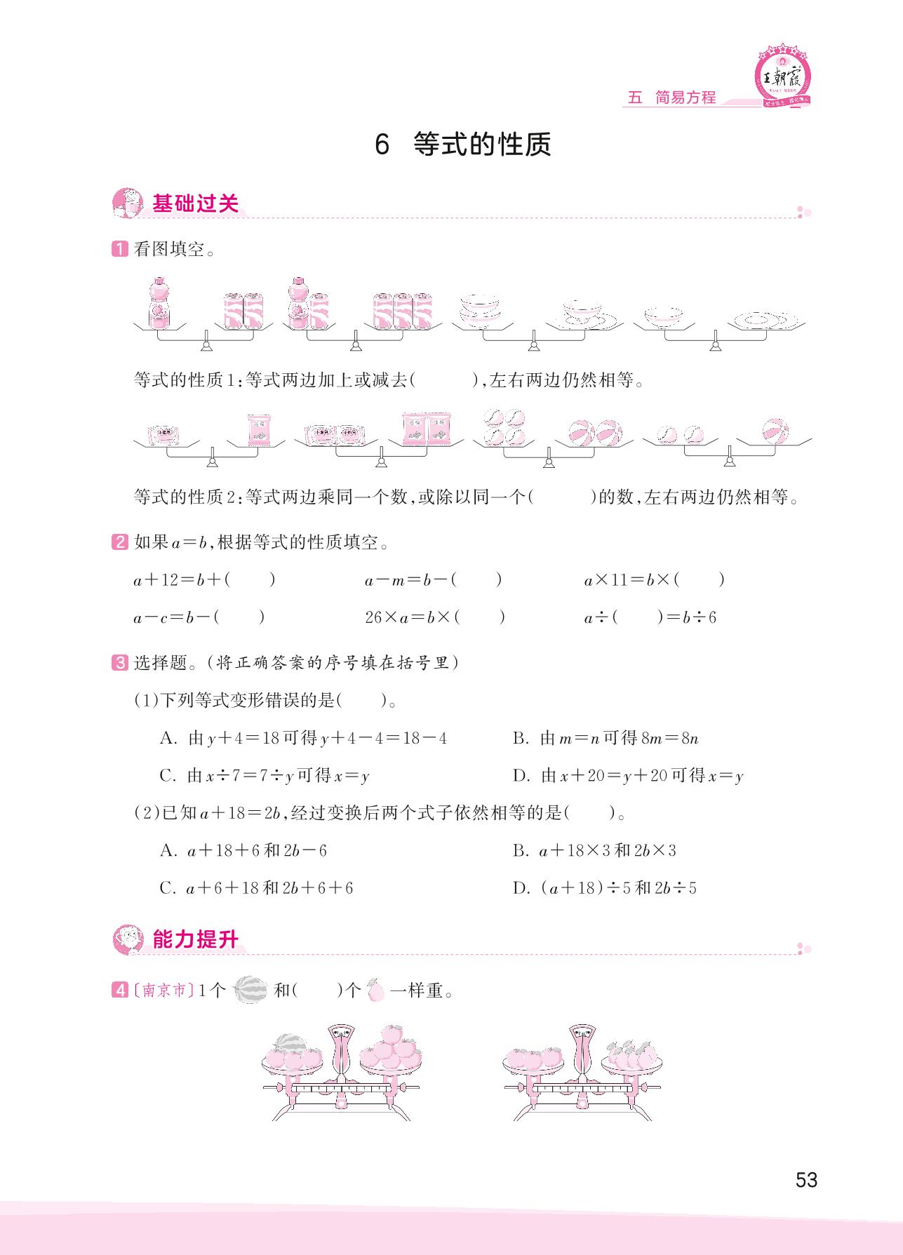 2023上册五年级数学人教版 五 简易方程——6 等式的性质