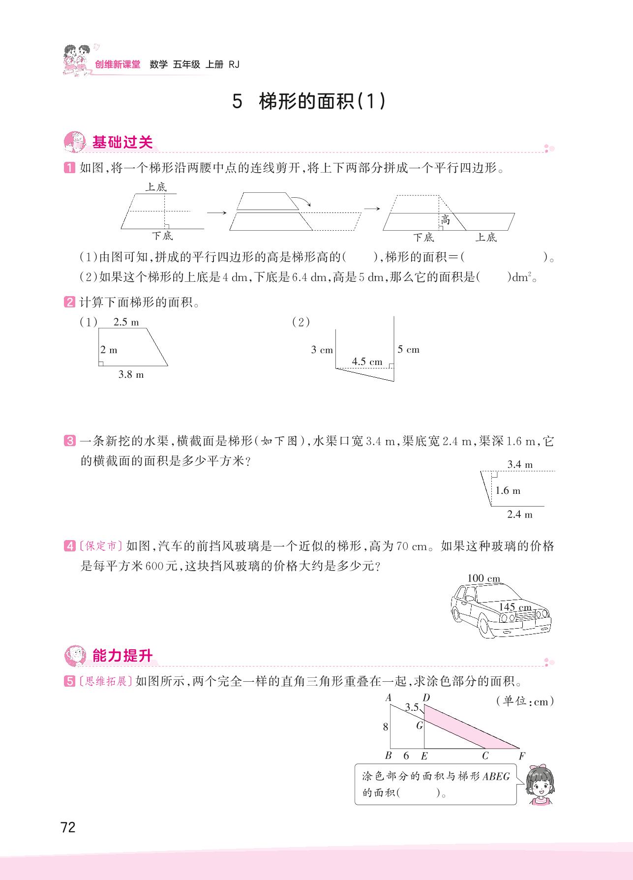 2023上册五年级数学人教版 六 多边形的面积——5 梯形的面积(1)