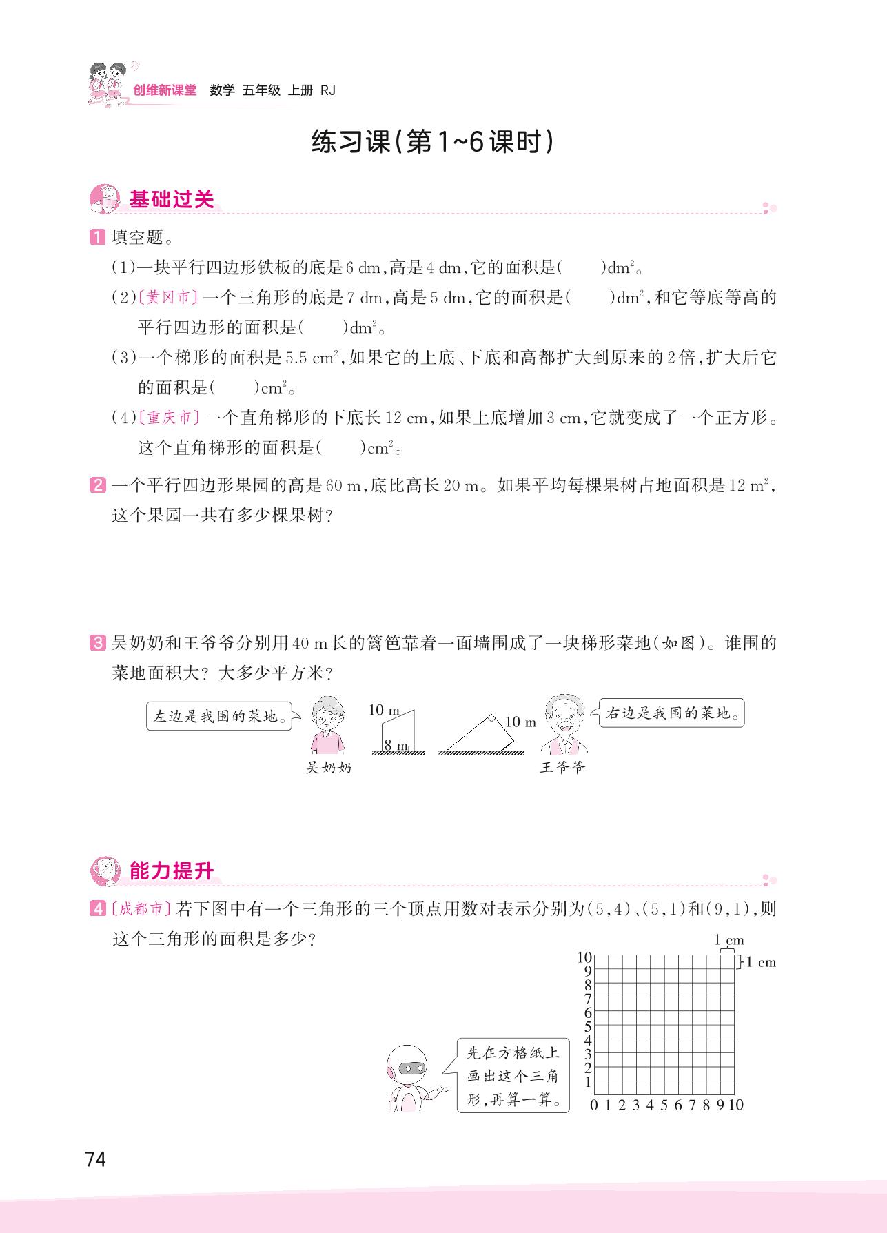 2023上册五年级数学人教版 六 多边形的面积——练习课(第1~6课时)