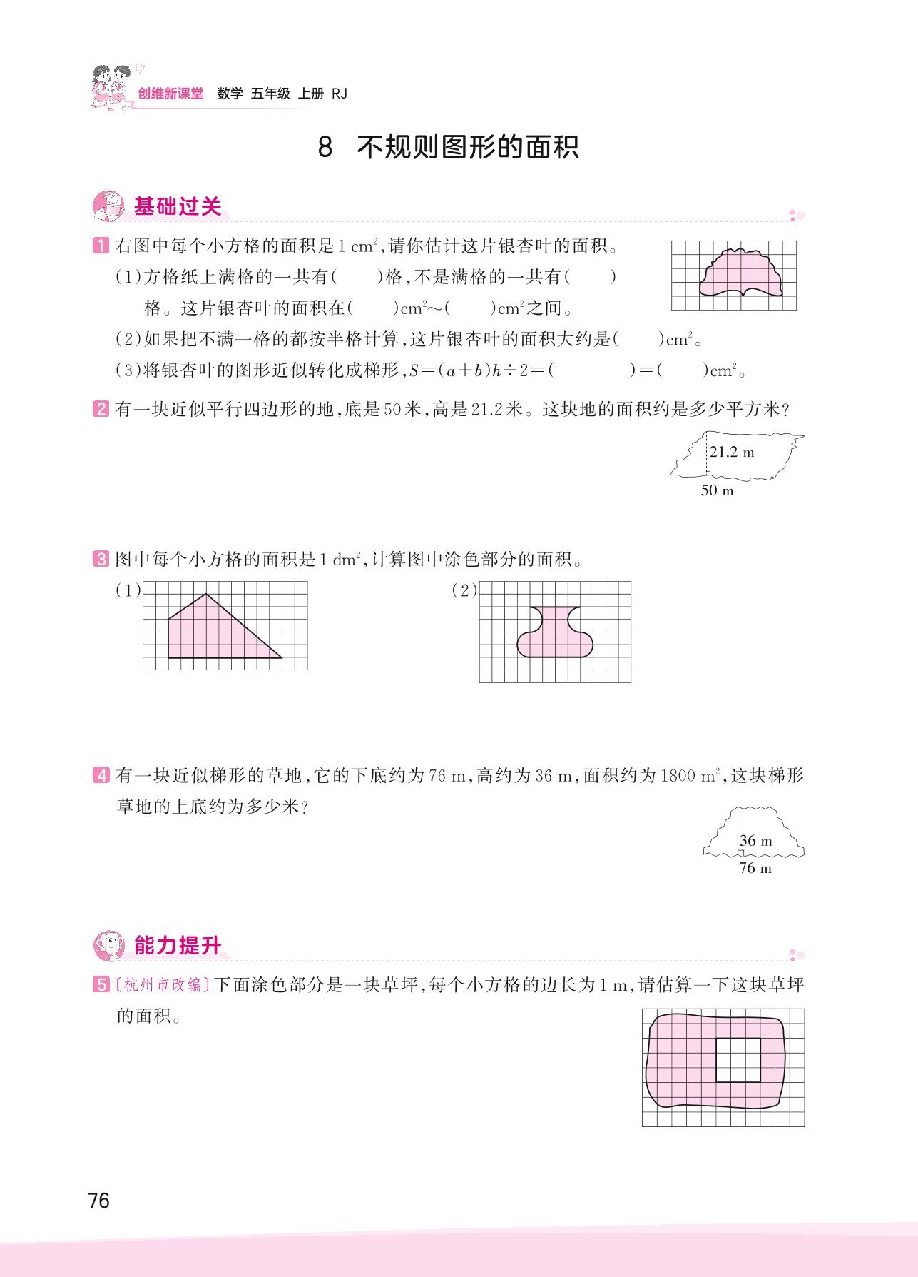 2023上册五年级数学人教版 六 多边形的面积——8 不规则图形的面积
