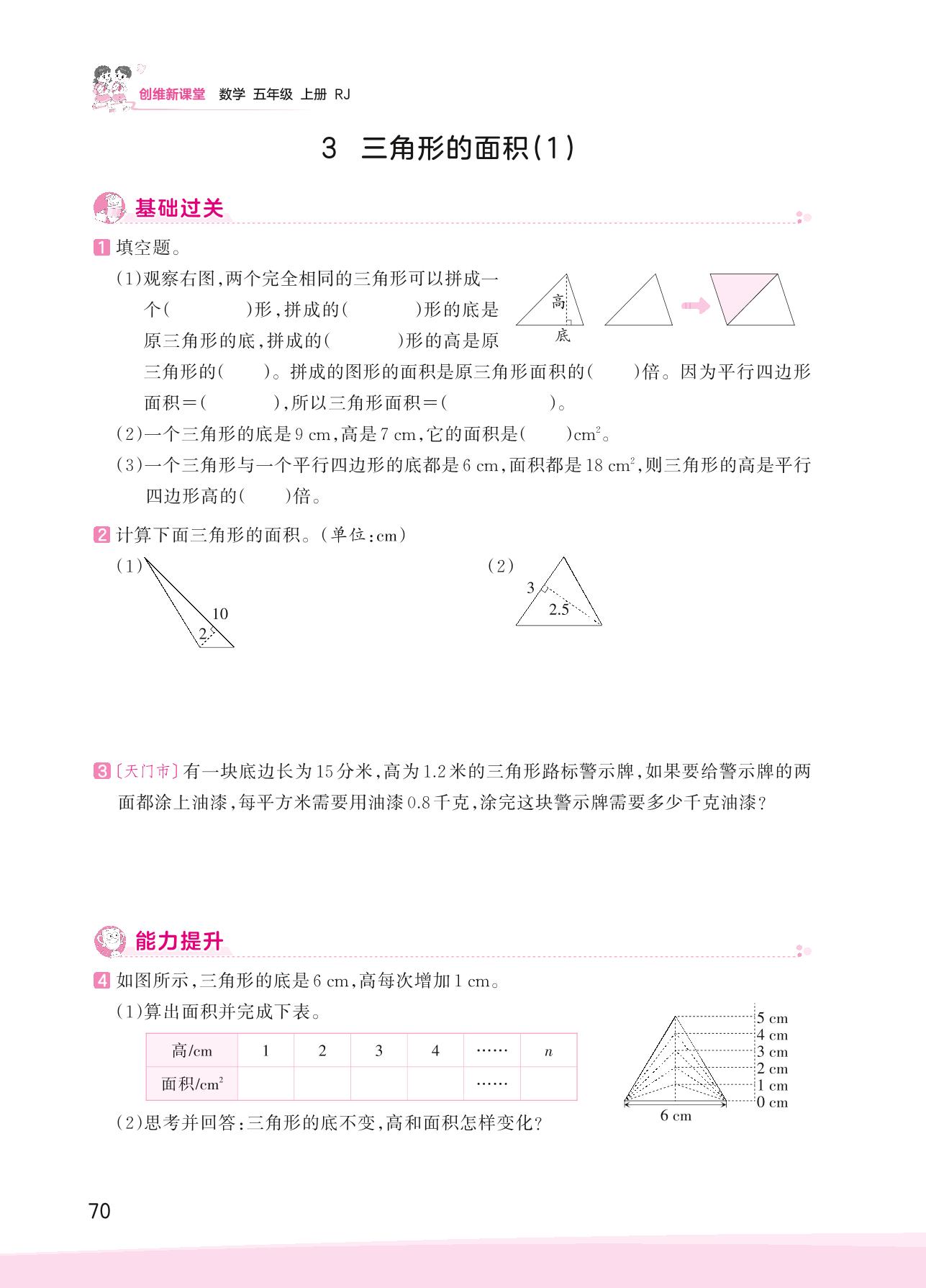 2023上册五年级数学人教版 六 多边形的面积——3 三角形的面积(1)