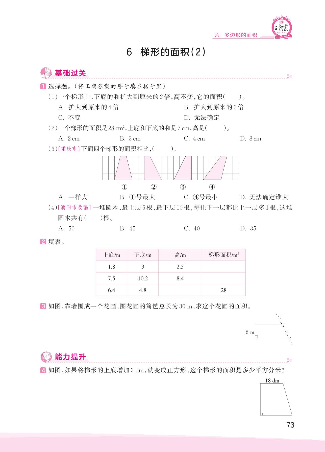 2023上册五年级数学人教版 六 多边形的面积——6 梯形的面积(2)