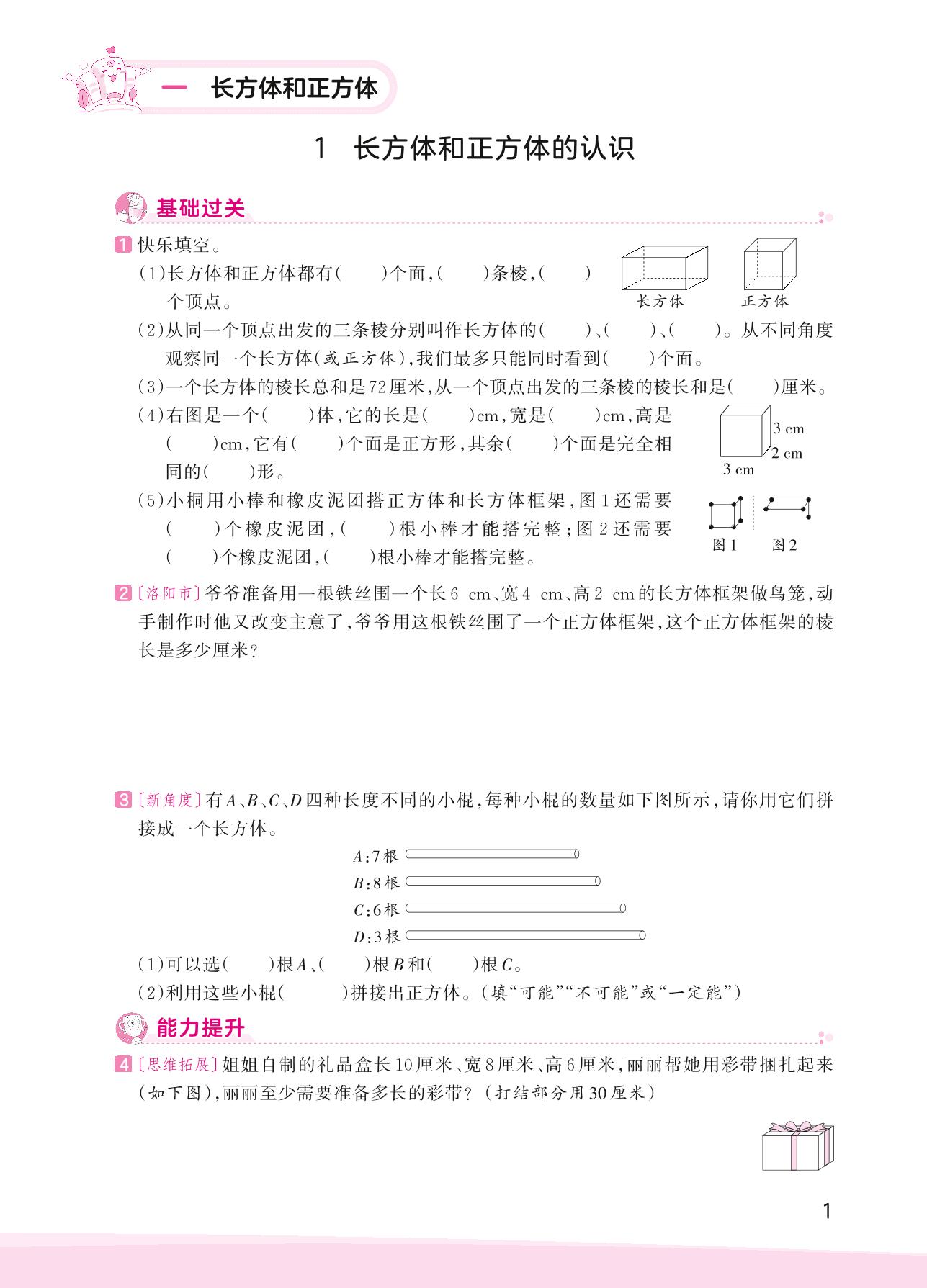 2023上册六年级数学苏教版 一 长方体和正方体——1 长方体和正方体的认识