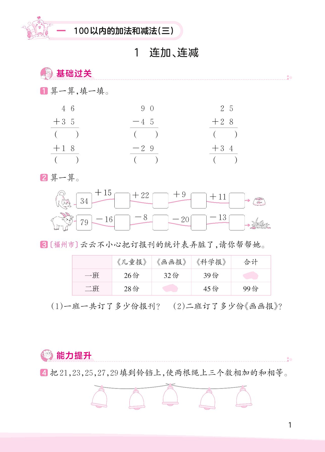 2023上册二年级数学苏教版 一 100以内的加法和减法(三)——1 连加、连减