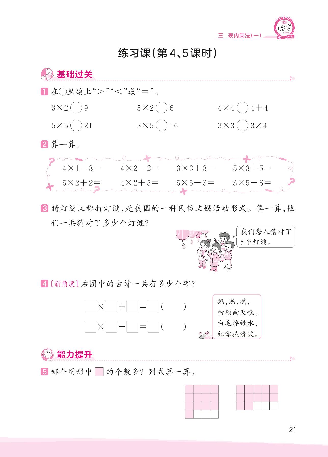 2023上册二年级数学苏教版 三 表内乘法(一)——练习课(第4、5课时)