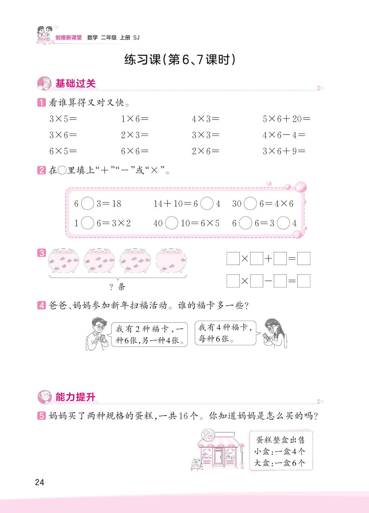 2023上册二年级数学苏教版 三 表内乘法(一)——练习课(第6、7课时)