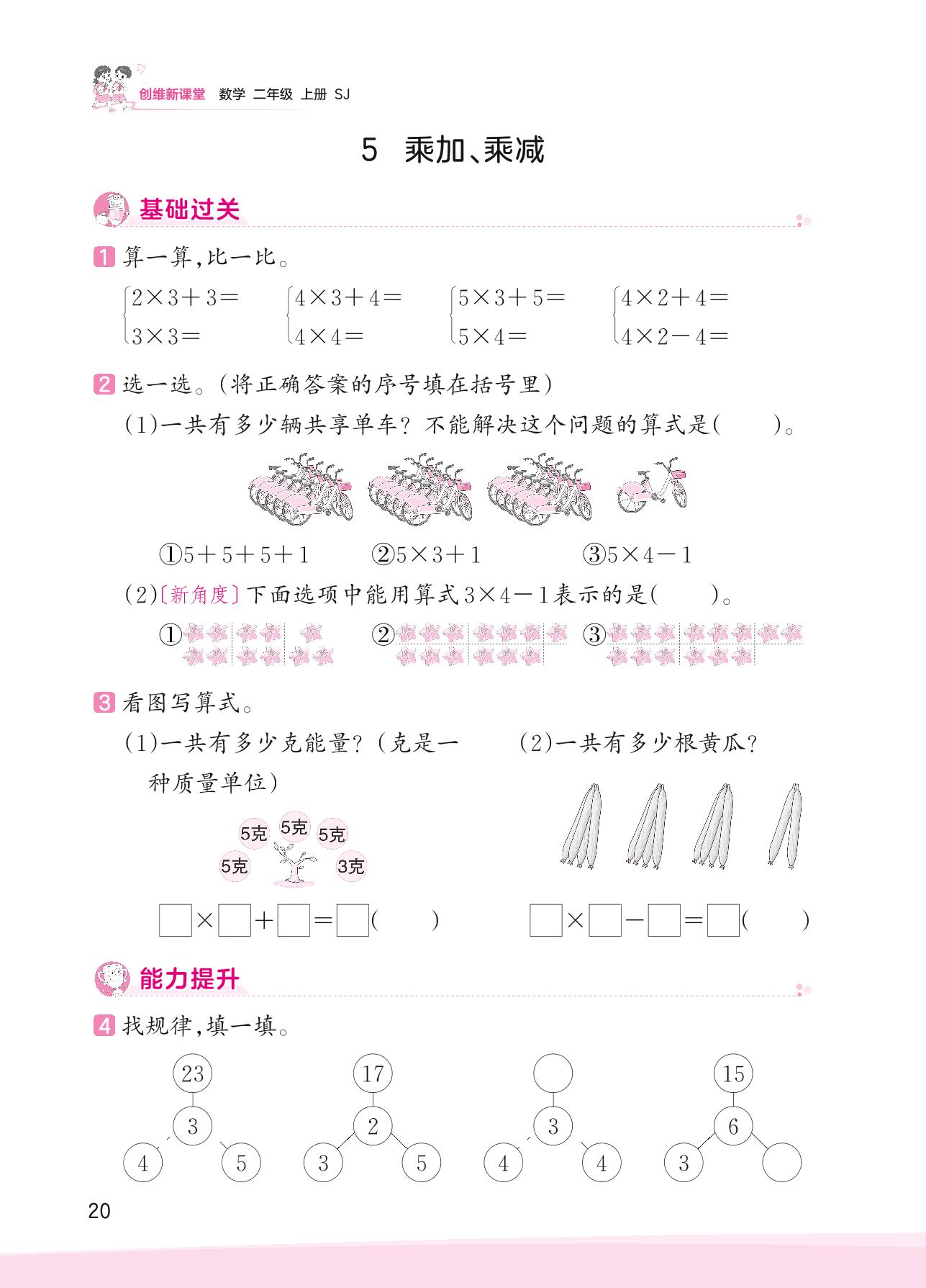 2023上册二年级数学苏教版 三 表内乘法(一)——5 乘加、乘减