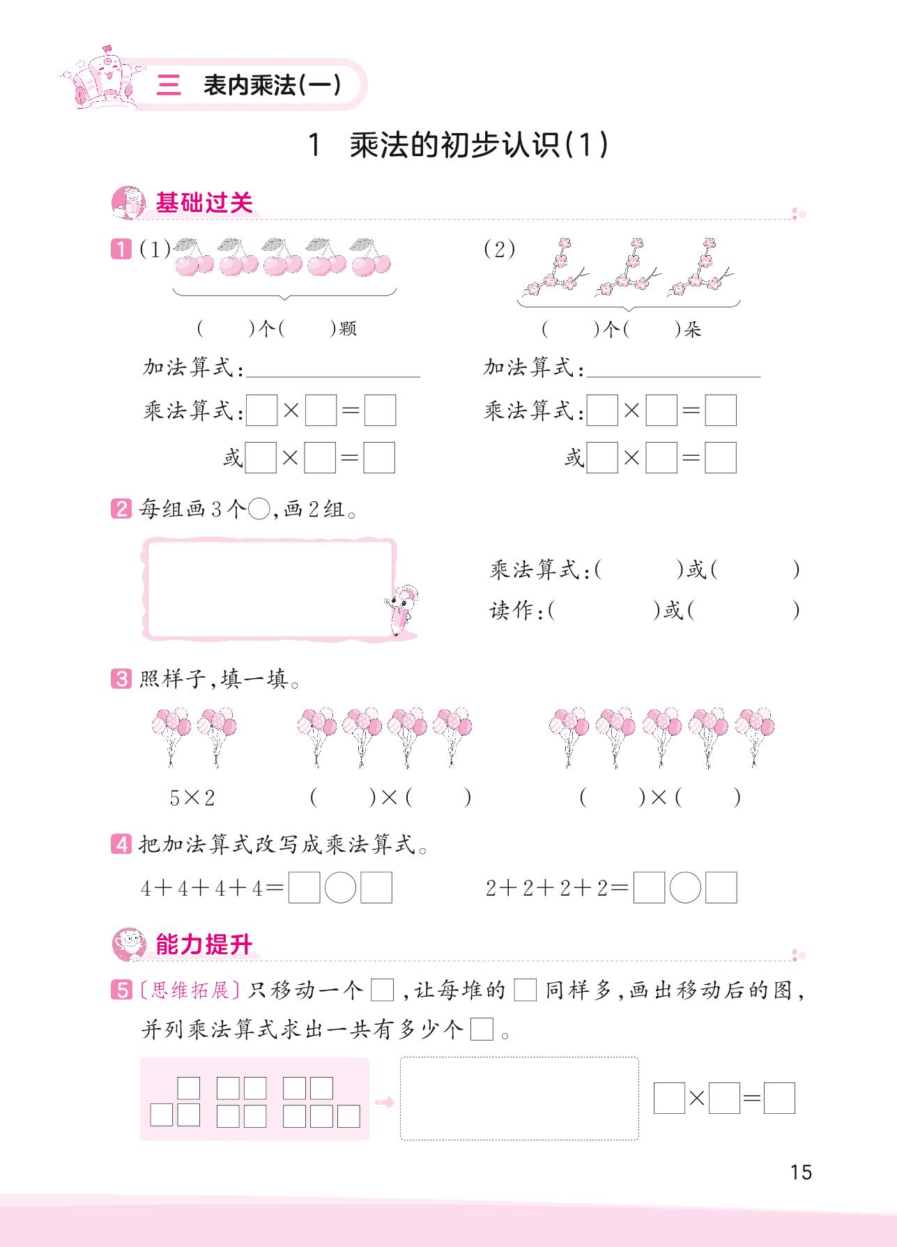 2023上册二年级数学苏教版 三 表内乘法(一)——1 乘法的初步认识(1)