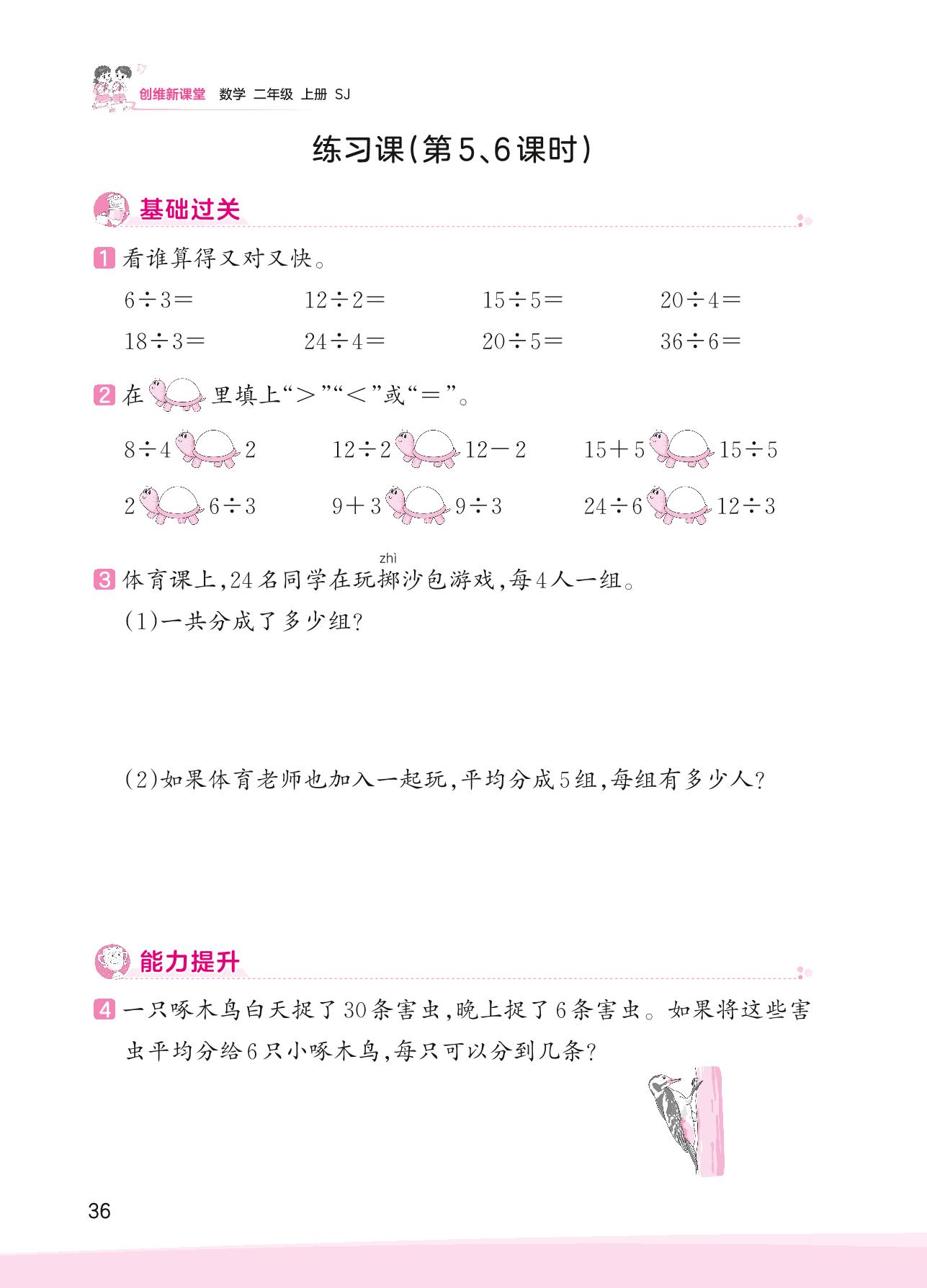 2023上册二年级数学苏教版 四 表内除法(一)——练习课(第5、6课时)