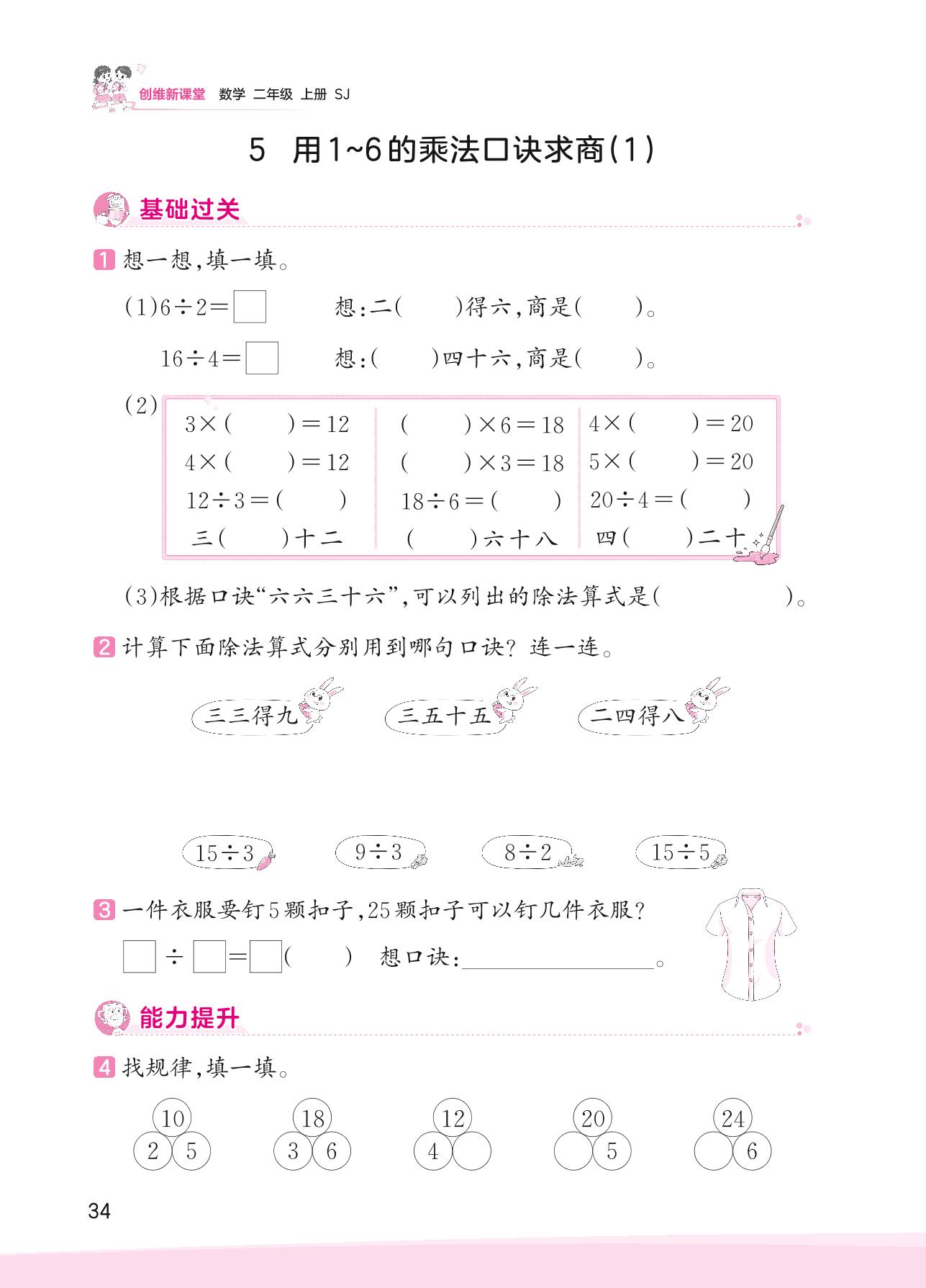 2023上册二年级数学苏教版 四 表内除法(一)——5 用1~6的乘法口诀求商(1)