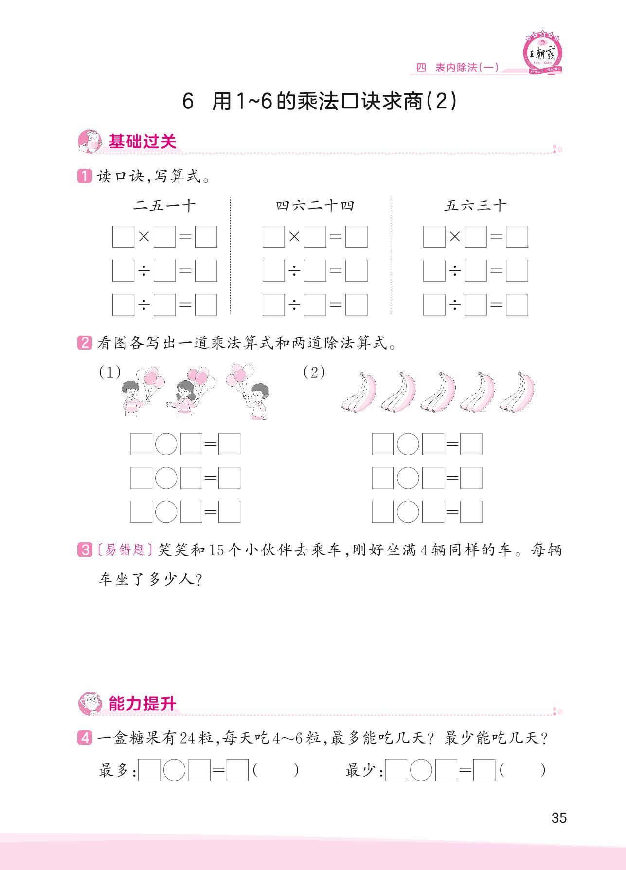 2023上册二年级数学苏教版 四 表内除法(一)——6 用1~6的乘法口诀求商(2)