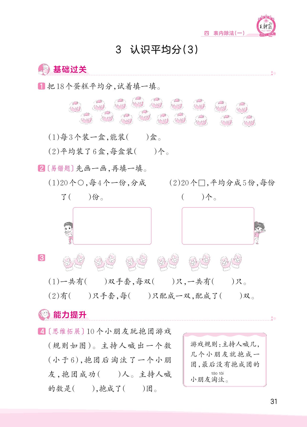 2023上册二年级数学苏教版 四 表内除法(一)——3 认识平均分(3)