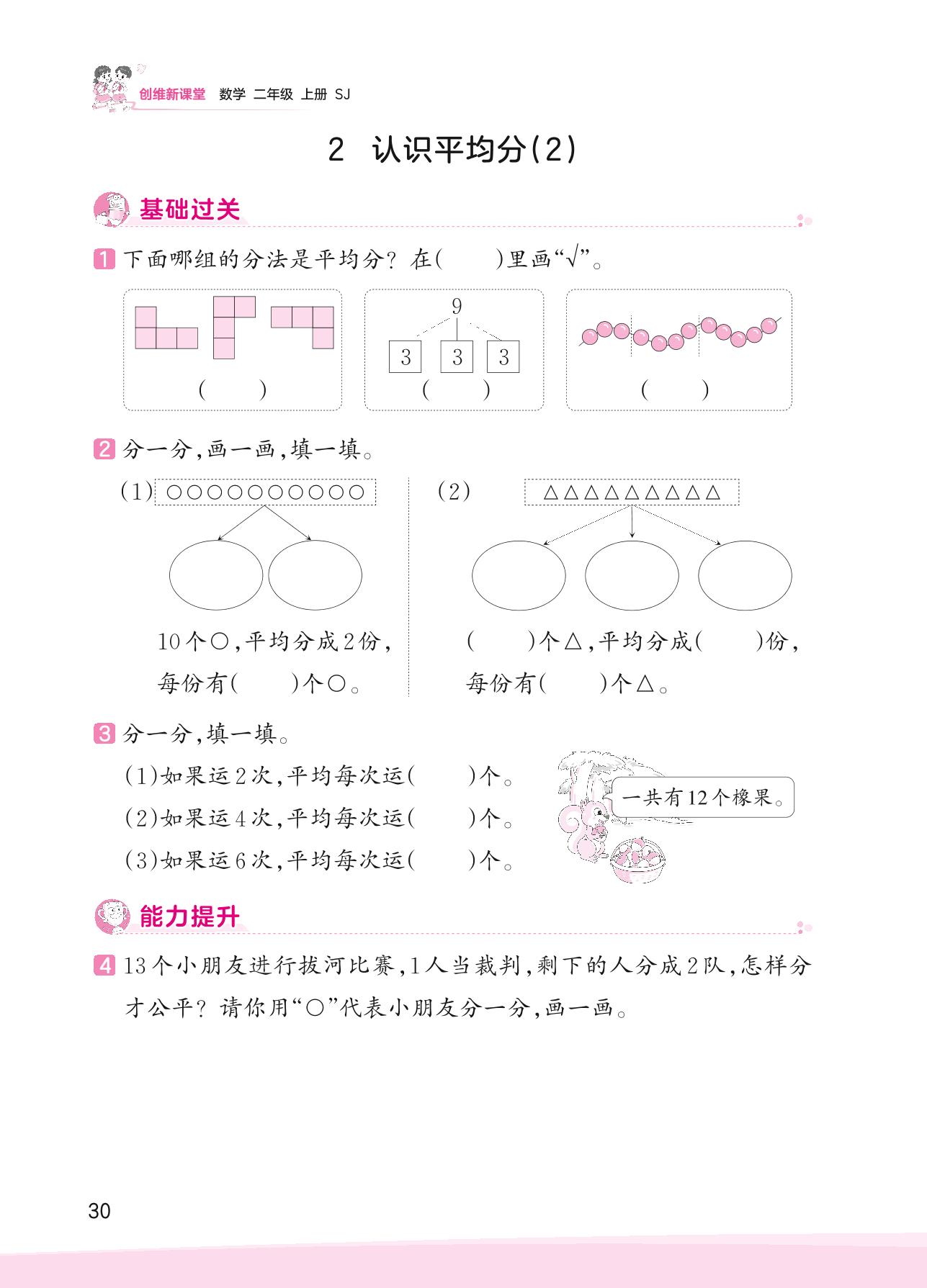 2023上册二年级数学苏教版 四 表内除法(一)——2 认识平均分(2)