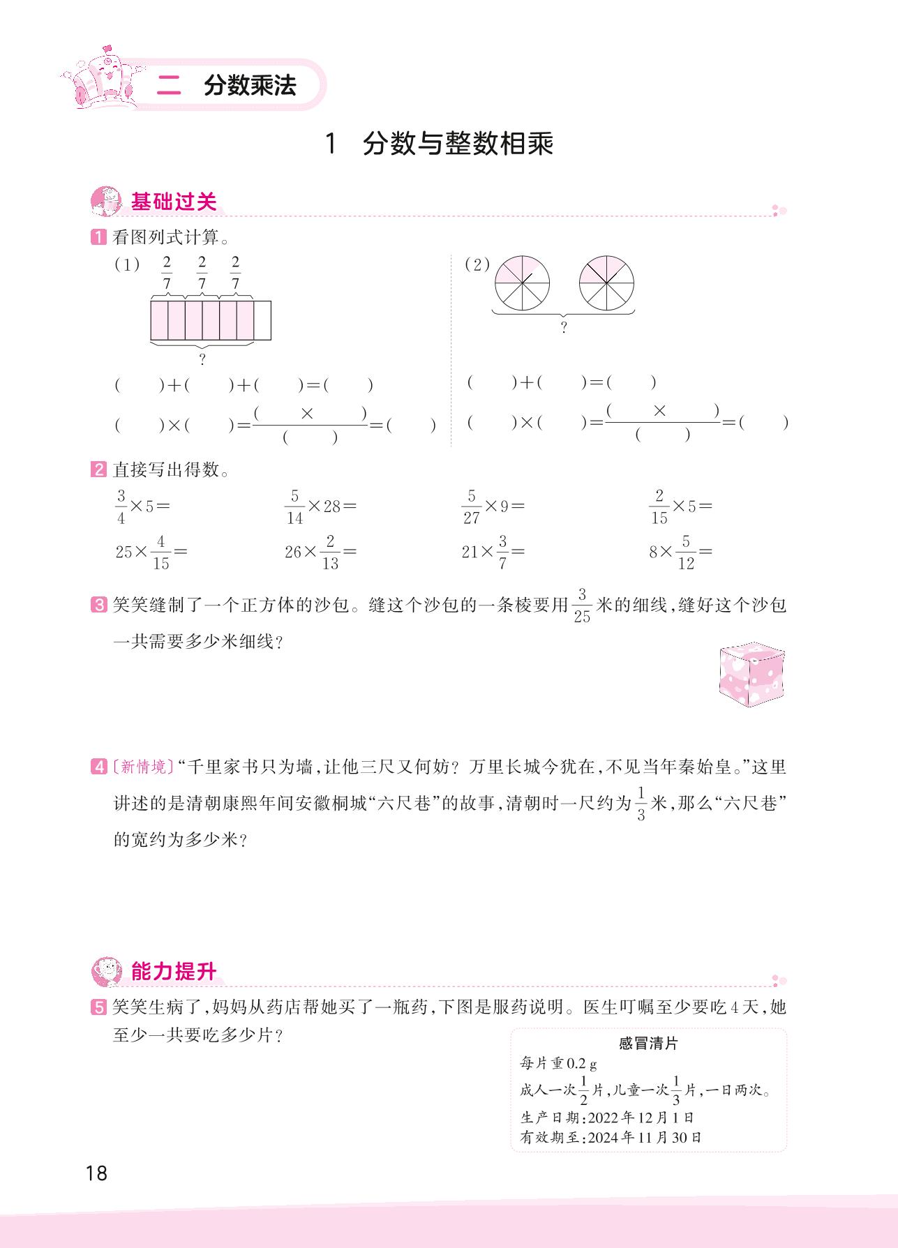 2023上册六年级数学苏教版 二 分数乘法——1 分数与整数相乘