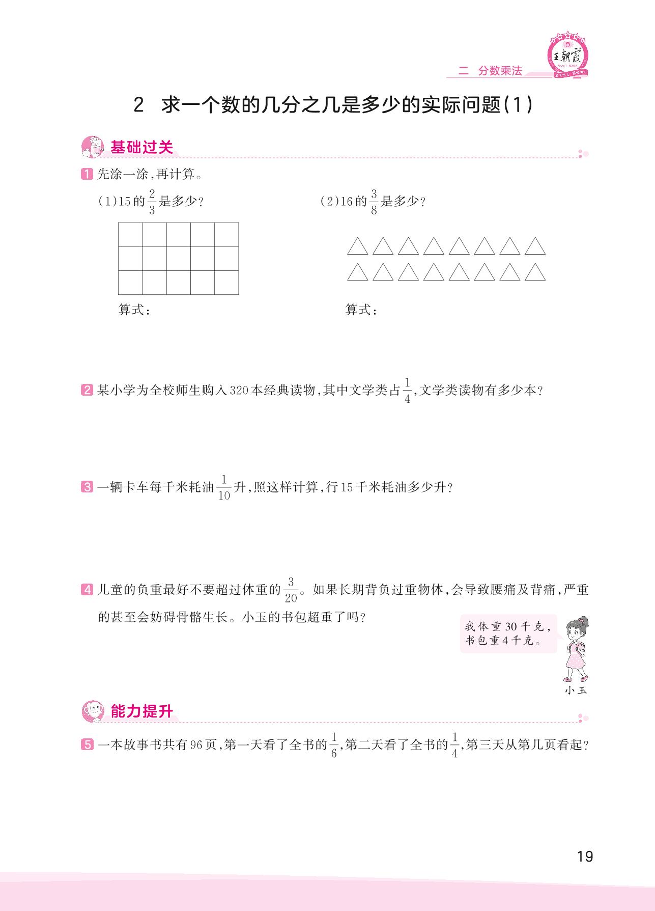 2023上册六年级数学苏教版 二 分数乘法——2 求一个数的几分之几是多少的实际问题(1)