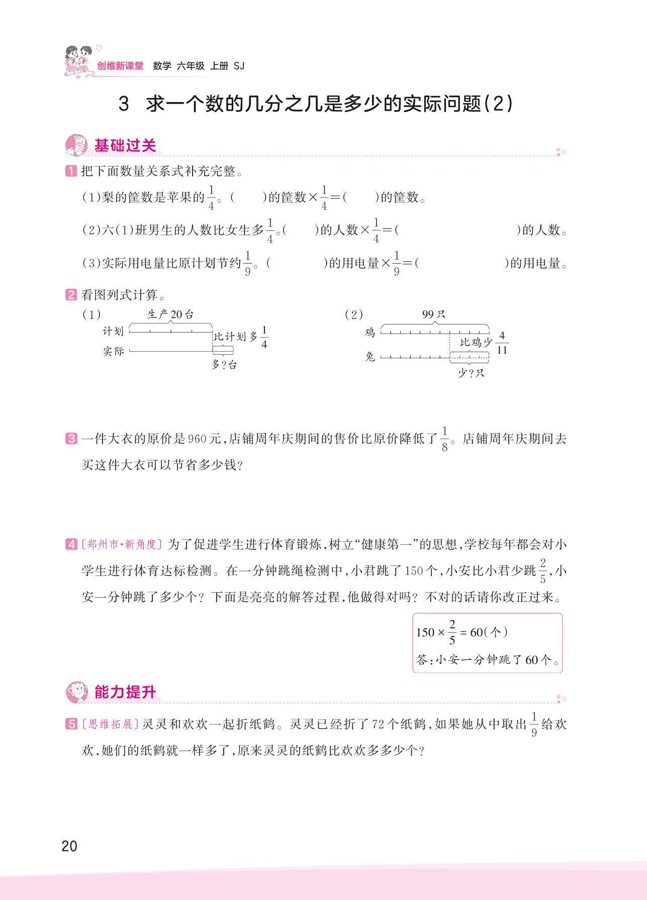 2023上册六年级数学苏教版 二 分数乘法——3 求一个数的几分之几是多少的实际问题(2)