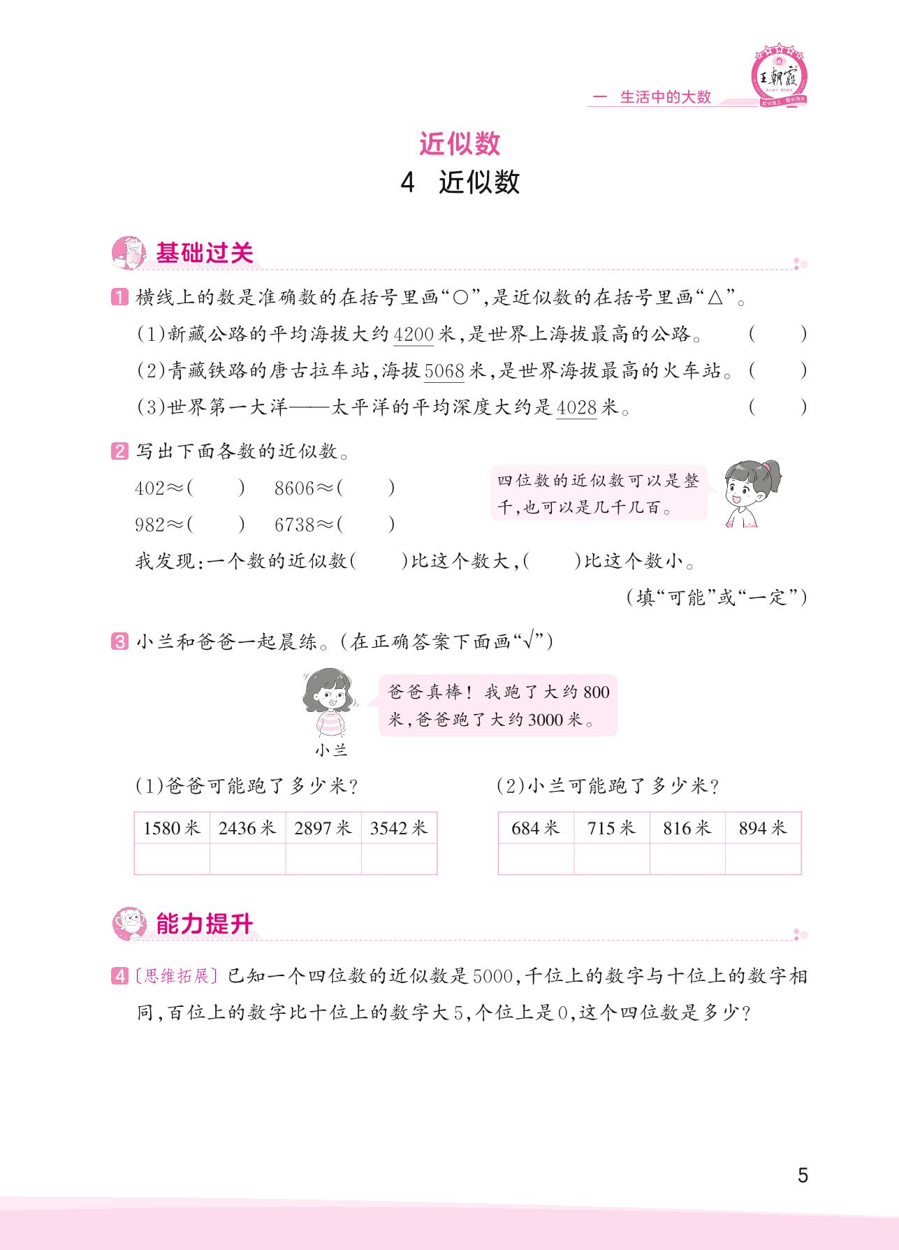 2023上册三年级数学冀教版 一 生活中的大数——4 近似数