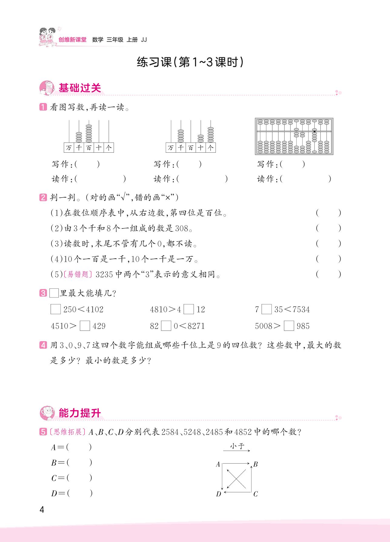 2023上册三年级数学冀教版 一 生活中的大数——练习课(第1~3课时)