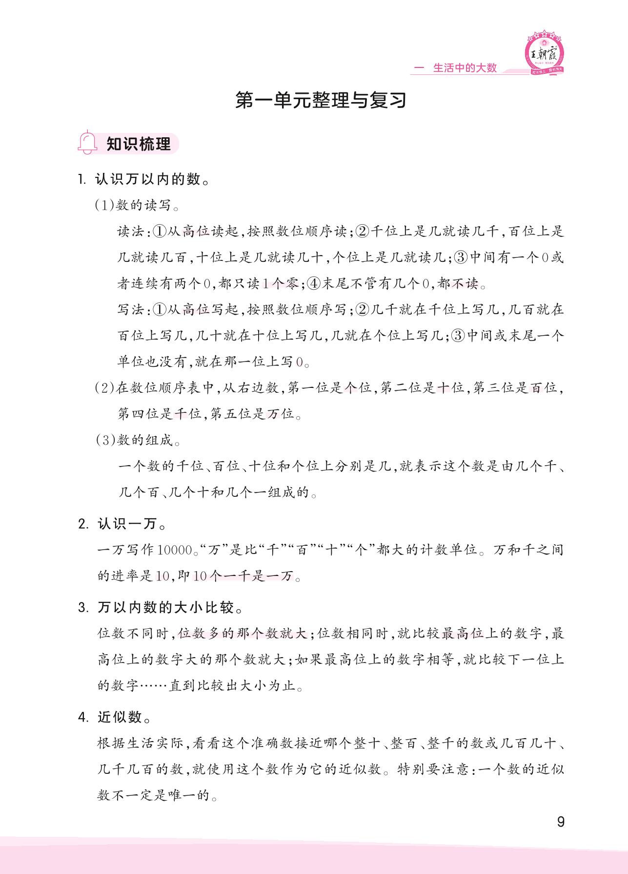 2023上册三年级数学冀教版 第一单元整理与复习