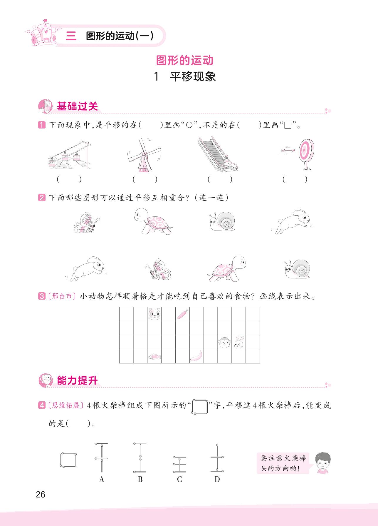 2023上册三年级数学冀教版 三 图形的运动(一)——1 平移现象
