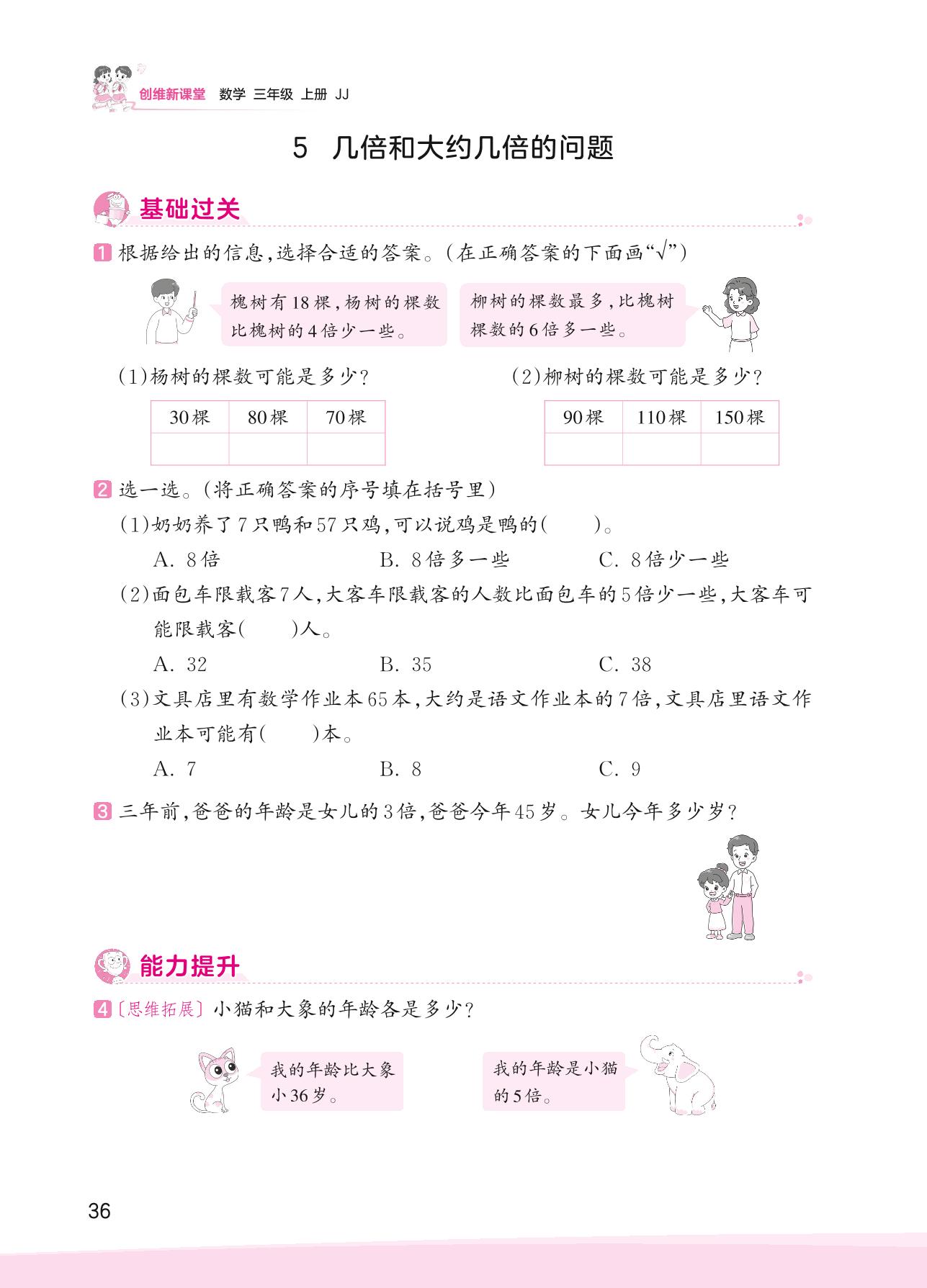 2023上册三年级数学冀教版 四 两、三位数除以一位数——5 几倍和大约几倍的问题