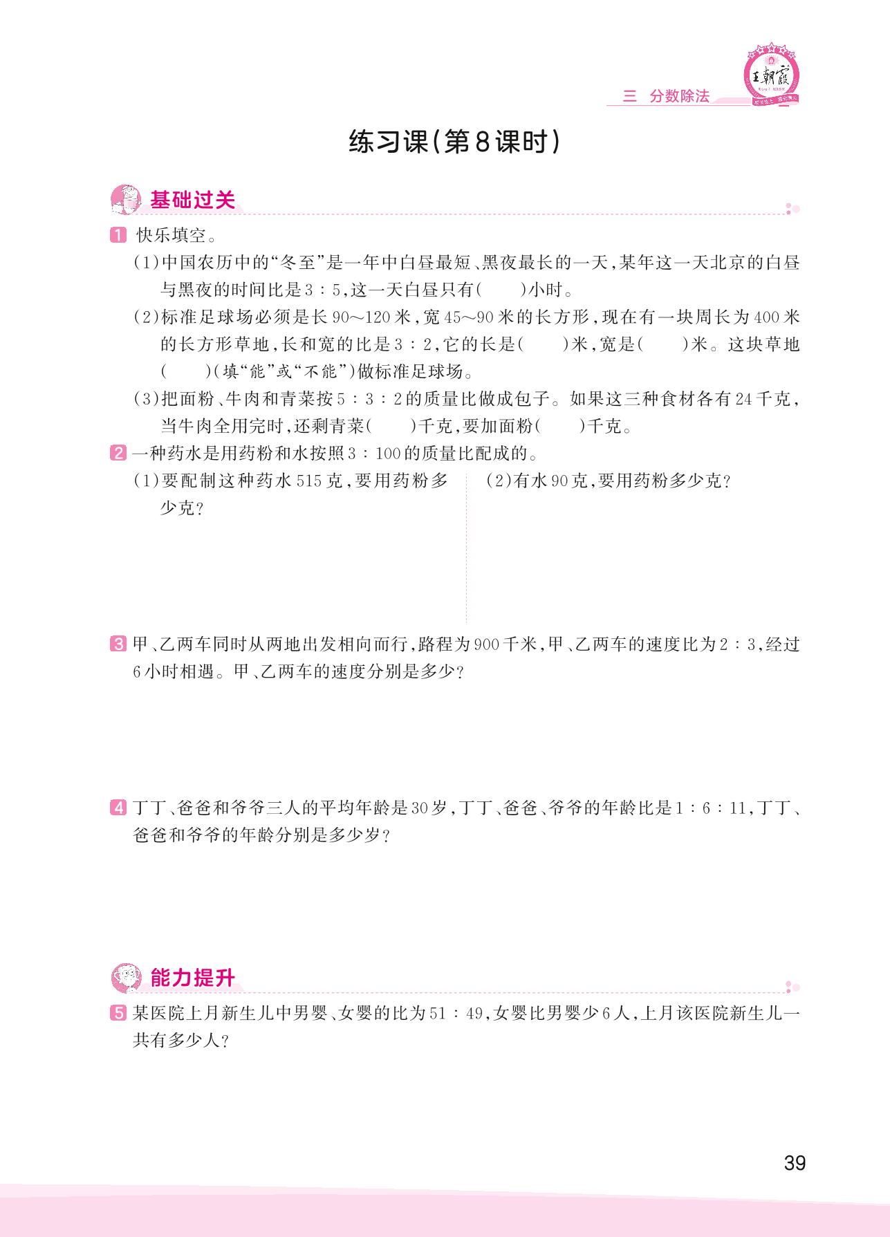 2023上册六年级数学苏教版 三 分数除法——练习课(第8课时)