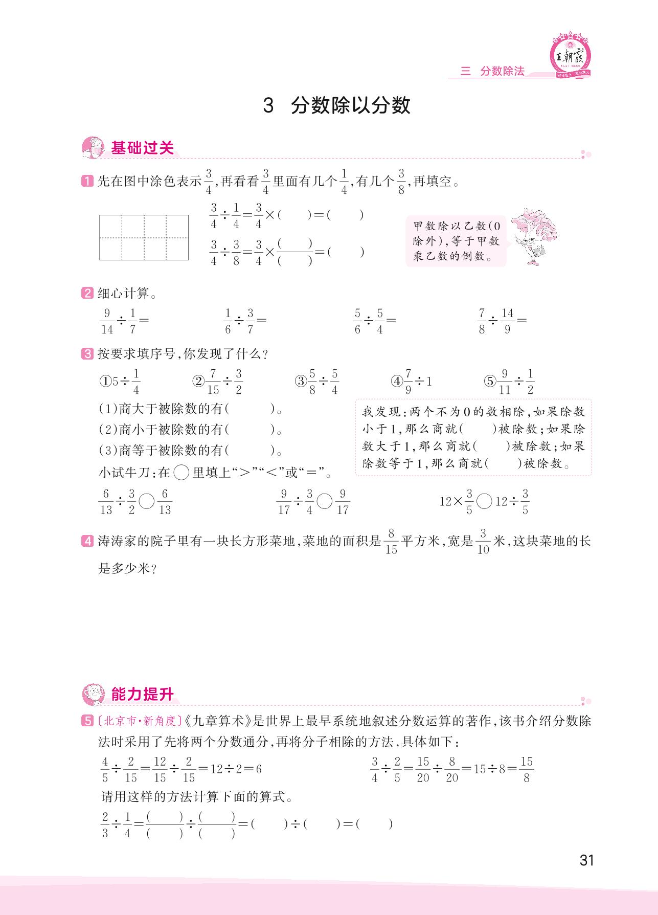 2023上册六年级数学苏教版 三 分数除法——3 分数除以分数