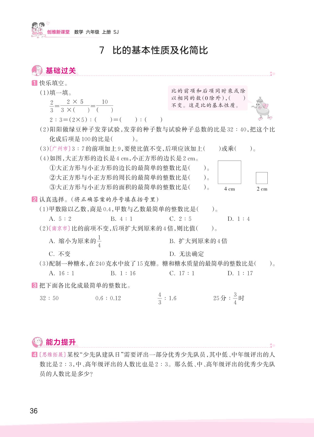 2023上册六年级数学苏教版 三 分数除法——7 比的基本性质及化简比