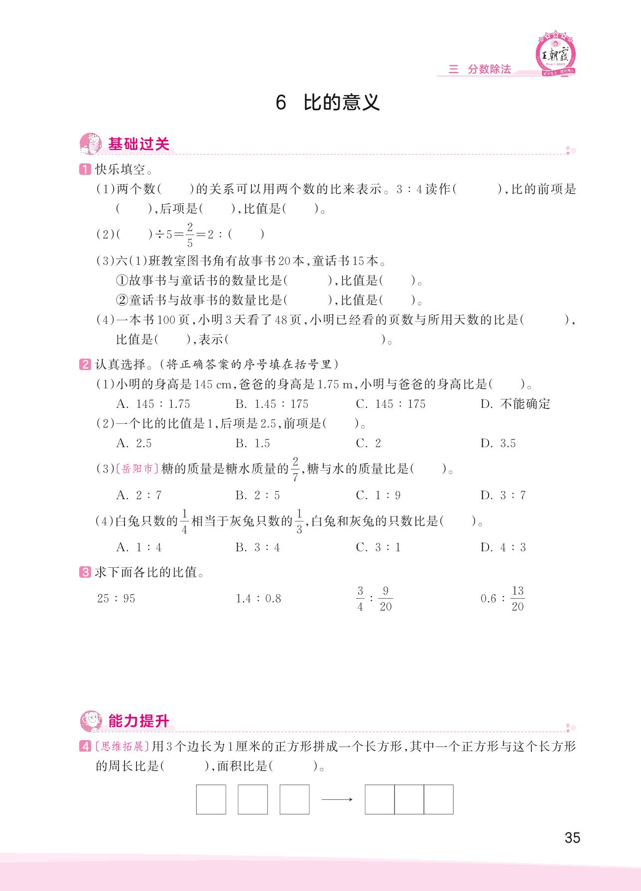 2023上册六年级数学苏教版 三 分数除法——6 比的意义