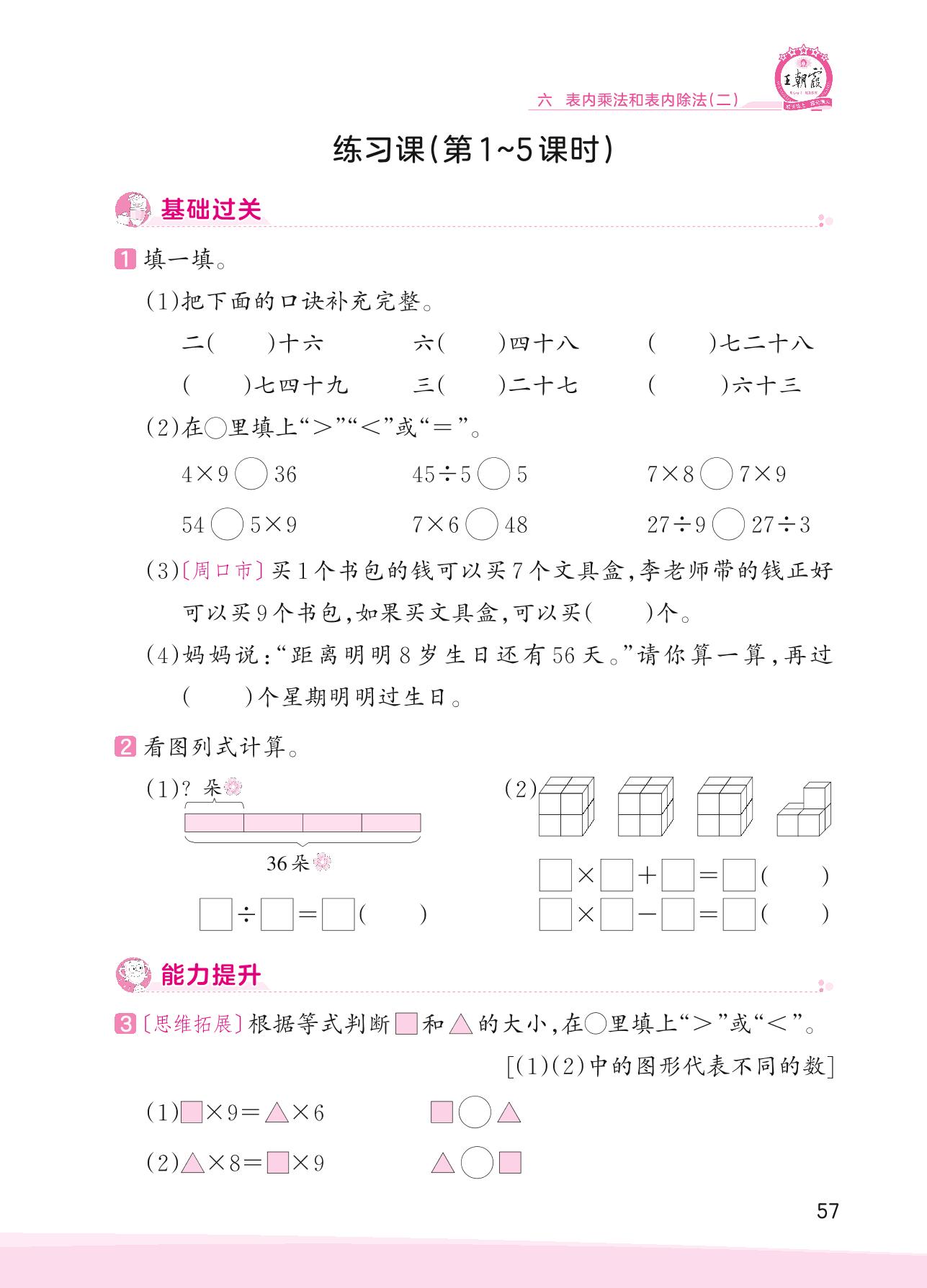 2023上册二年级数学苏教版 六 表内乘法和表内除法(二)——练习课(第1~5课时)