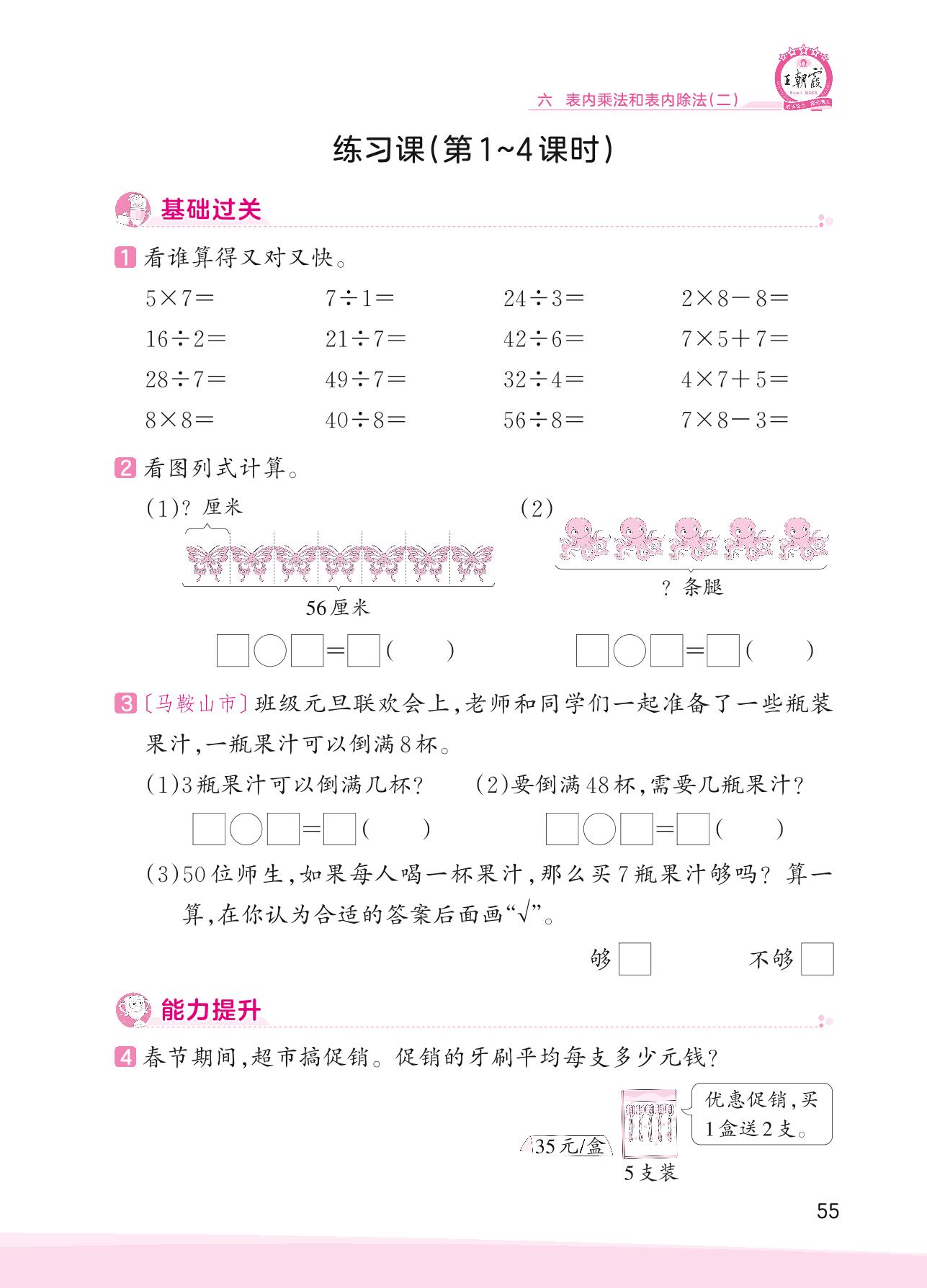 2023上册二年级数学苏教版 六 表内乘法和表内除法(二)——练习课(第1~4课时)