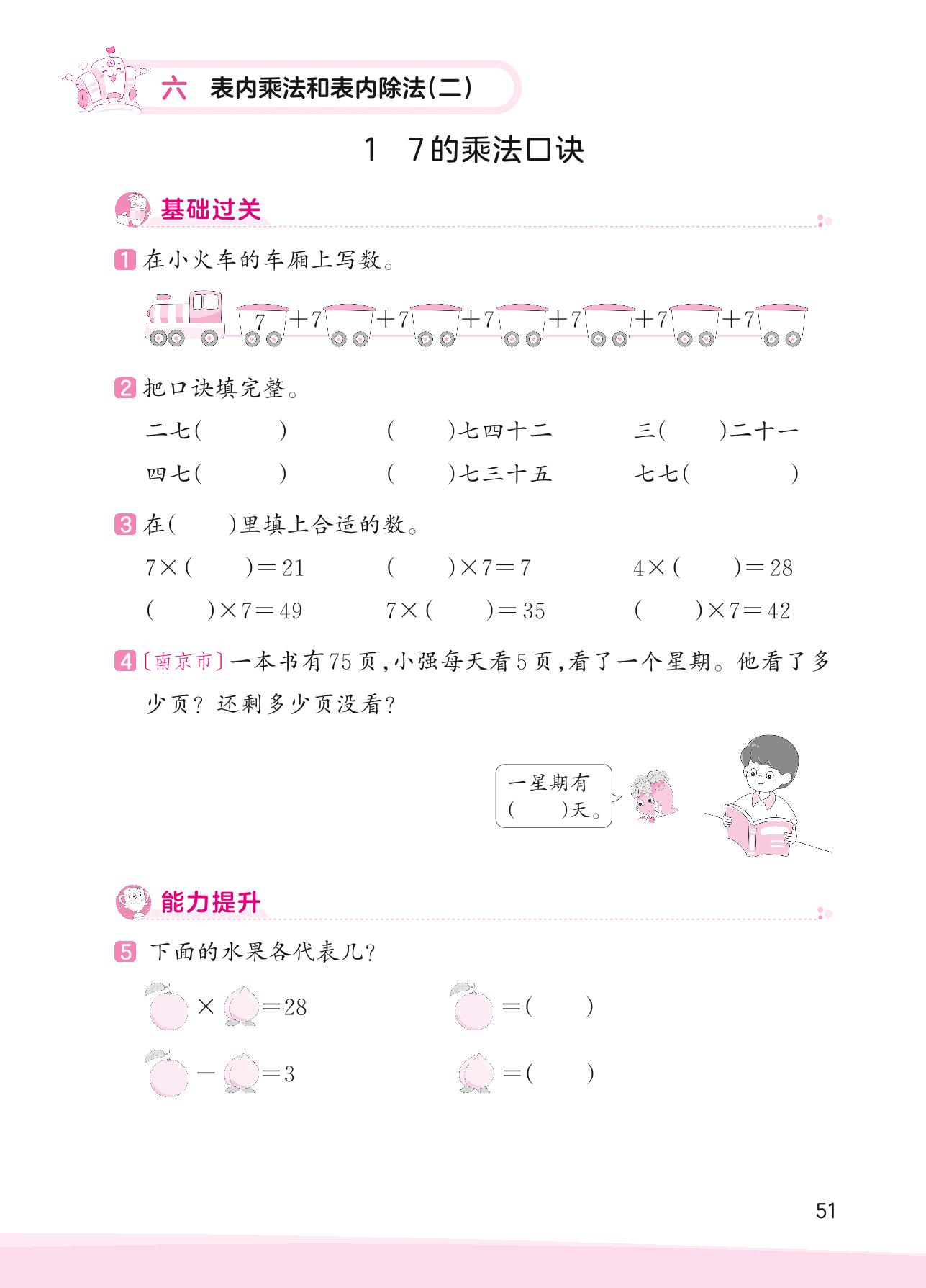 2023上册二年级数学苏教版 六 表内乘法和表内除法(二)——1 7的乘法口诀